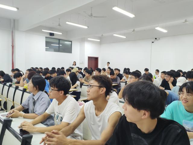 宣讲会上,舒雯对两家公司代表表示热烈欢迎。随后,中航期货有限公司南昌营业部反洗钱专员龙蓉从洗钱的概念、常见的洗钱手段出发,列举了具体的洗钱案例,并告诫学生如何避免洗钱犯罪活动的干扰。西南证券股份有限公司江西分公司合规经理夏红英通过几个经典的诈骗案例,讲述了电信诈骗的特点,并告诫同学们要防范于心、反诈于行。