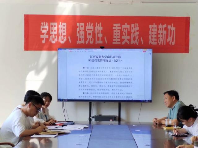 系党总支副书记曾攀带领全体教师认真学习了学院《师德档案管理办法(试行)》与修订后的《师德考核办法》,他强调,全体教师要加强师德师风建设,牢记人才培养使命,为学院发展汇聚新动能、增强正能量。