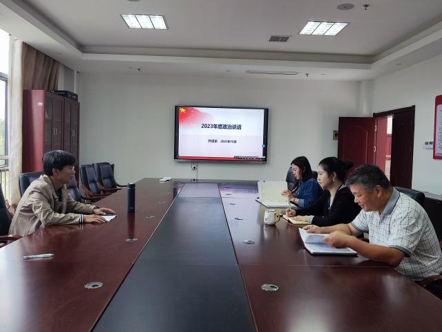 10月10日下午,外语系在明道楼B221开展集体政治谈话,系党总支书记余嘎与系属各党支部书记及办公室负责人进行集体谈话。