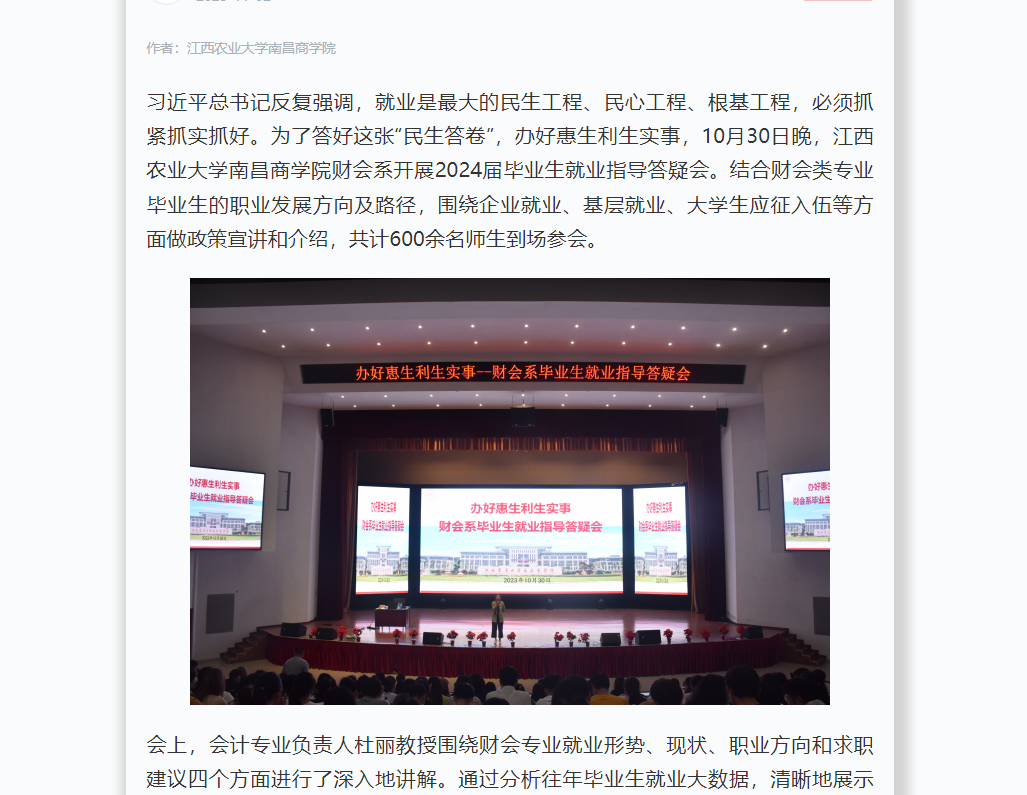 【学习强国】答好民生答卷:江西农业大学南昌商学院财会系开展就业指导答疑会