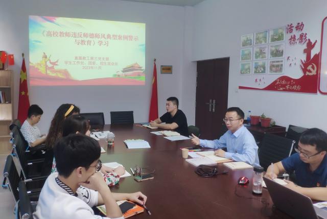 为深入贯彻学院对教师的师德要求,全面提升全体教师师德师风水平,11月3日,学工处、招生就业处在笃行楼320组织开展师德师风典型案例警示教育学习。