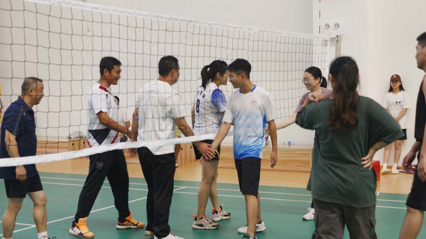 据悉,本次比赛由院工会主办,军事体育部承办,有10支代表队共100余名教工参加。比赛中,老师们默契配合、相互协作,发球、接球、传球、扣杀……精彩的表现赢得在场观众的阵阵掌声。
