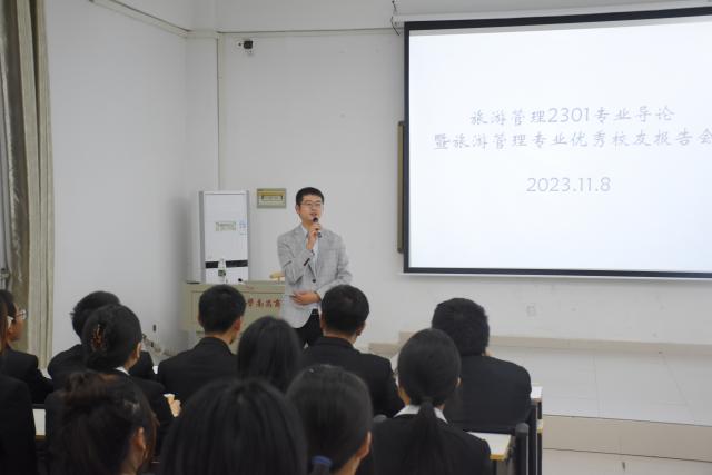 11月8日,管理系在厚德楼AW103开展优秀校友报告会。会议由旅游管理专业负责人孙冰主持,优秀校友罗词强主讲,旅游管理专业学生参加。