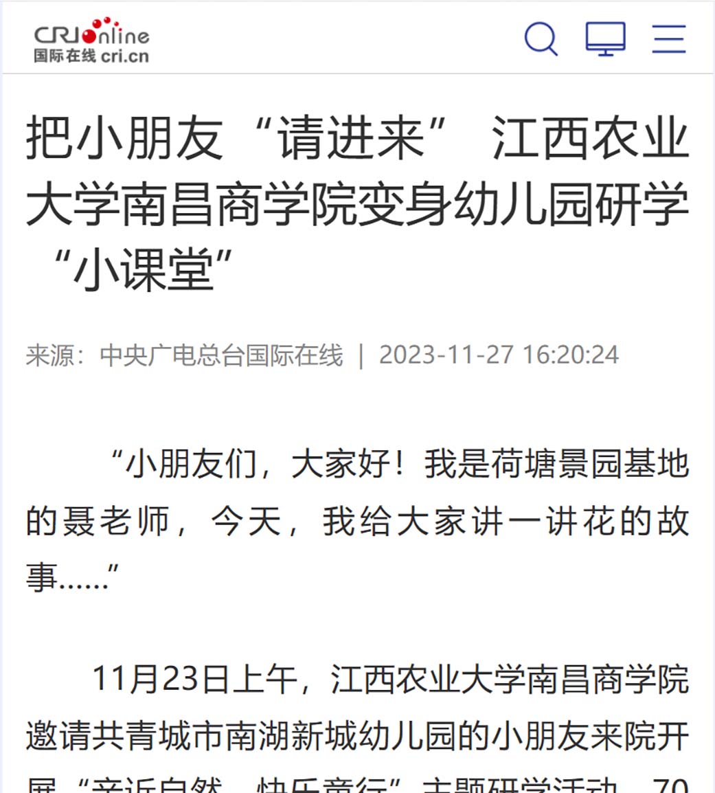 【中国网】把小朋友“请进来” 江西农业大学南昌商学院变身幼儿园研学“小课堂”