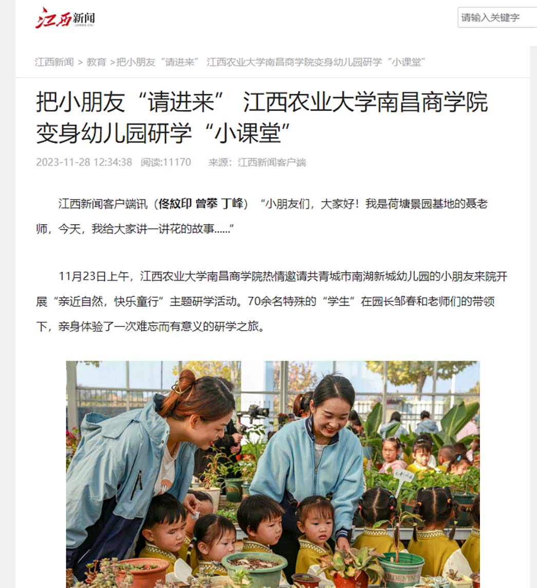 【江西新闻】把小朋友“请进来”江西农业大学南昌商学院变身幼儿园研学“小课堂”