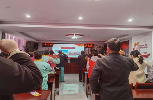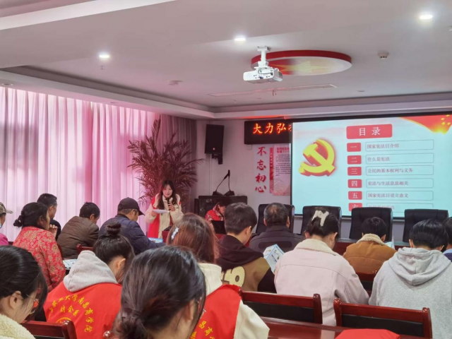 12月6日下午,财会系学生党支部组织师生党员12人前往共青城江益镇光明社区开展宪法宣讲志愿服务。“您对宪法了解多少?宪法是我们国家的根本法,公民享有的基本权利和义务是……”光明社区会议室内,学生党员谢丽萍、肖磊通过贴近群众实际生活的例子,为社区居民及工作人员讲解宪法的主要内容、基本原则和重要意义。