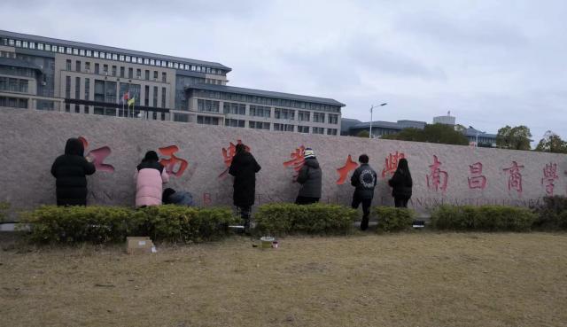 校名牌坐落于学院北门,横贯东西几十米,宏伟壮观,是学院独具特色的标志之一,代表着学院的形象和文化特色。随着时间推移,校名牌上的字留下了岁月的痕迹,面对这种情况,人文与艺术系环设专业的学生们主动承担起了维护学院“门面”的重任,让校碑穿上“新衣”,迎接新的一年的到来。