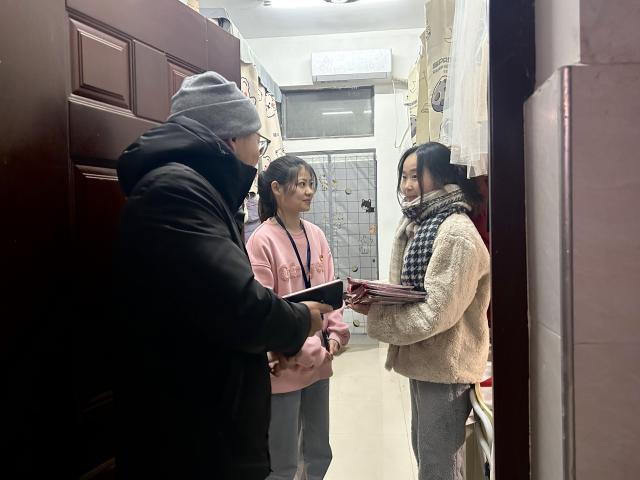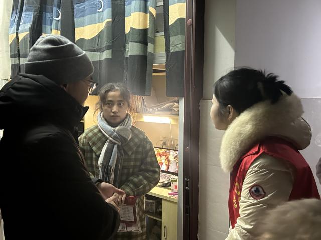 活动中,党员们顶着凛冽的寒风来到宿舍,逐一走访考研学子,叮嘱并鼓励他们在最后冲刺阶段,凝心聚力,不仅要保持良好的学习状态,注意身体健康,做到劳逸结合,持续发力;还要保持良好的心理状态,沉着应对。同时,支部师生党员们为考研学子送上精心准备的考研大礼包,饱含着外语系对考研学子们浓浓的关爱和殷切的期盼。