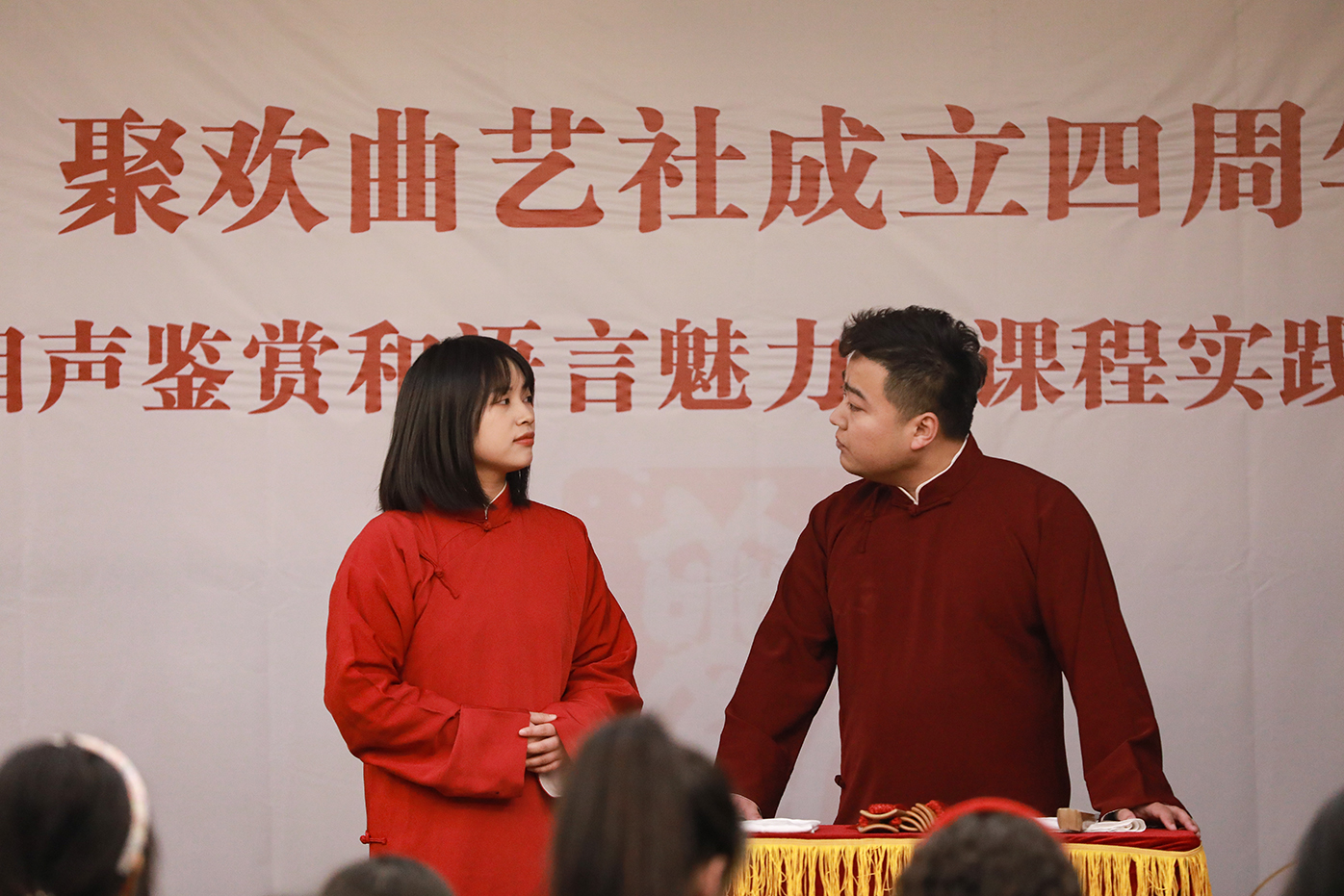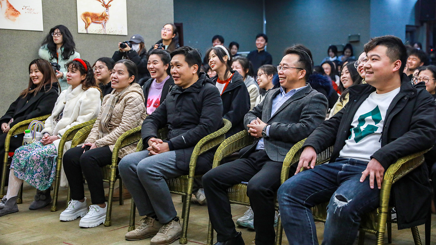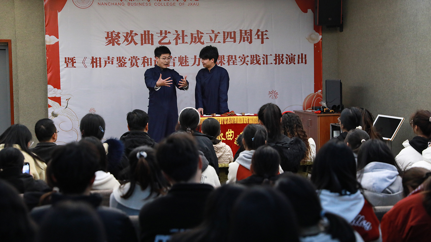 12月26日晚,江西省活力社团聚欢曲艺社成立四周年暨《相声鉴赏和语言魅力》课程实践汇报演出在延宾楼举行。院党委书记黎敏,党委副书记李海峰,纪委书记邱波到场观看指导,与广大师生一起领略传统文化的魅力。