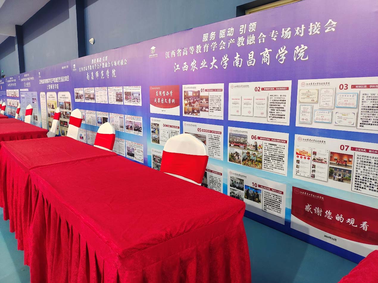 在产教融合对接会上,学院精心布置了展台展板,重点展示近几年应用型办学的成果案例。这些成果充分展现了学院在“坚持项目驱动,服务地方经济”方面的经验和成绩,受到了各高校参会人员的关注和好评。(文、图/教务处,审核/潘求丰)