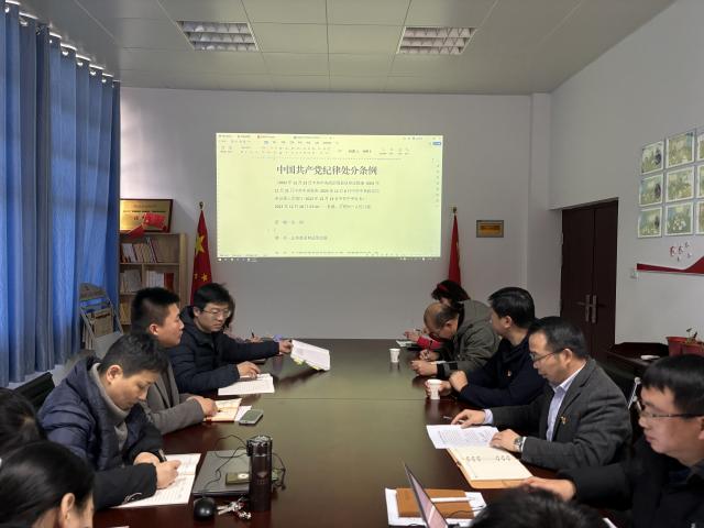 1月9日下午,院直属教工第三党支部在笃行楼E320组织全体党员专题学习新修订《中国共产党纪律处分条例》(以下简称“条例”),院党委副书记李海峰和支部全体党员一同参加学习。