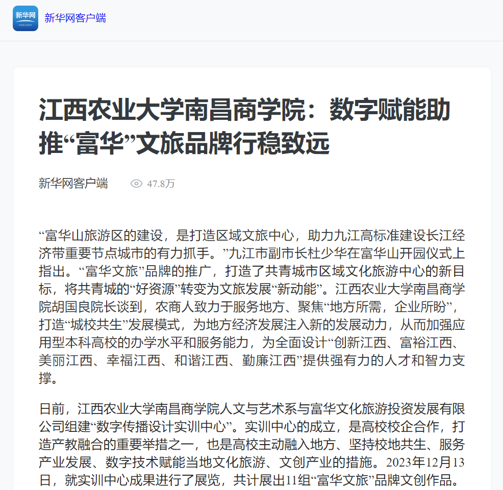 【新华网】江西农业大学南昌商学院:数字赋能助推“富华”文旅品牌行稳致远
