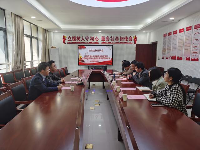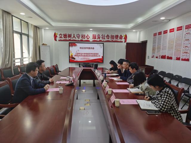 为进一步深化校企合作,推进与企业深度产教融合,拓宽学生就业渠道,3月20日,管理系与江西鑫邦文化旅游投资发展有限公司、江西鑫邦葛仙山旅游投资管理有限公司在明辨楼KN301召开校企合作洽谈会。系主任孙小飞,党总支书记杨谨鸿及相关人员热情接待,并进行了座谈交流。