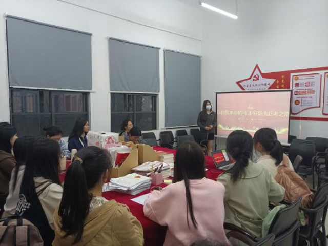 为教育引导学生党员进一步坚定理想信念,践行“赶考”精神,走好新时代赶考之路,4月2日下午,外语系学生党支部在党员活动室开展“以自我革命精神走好新的赶考之路”专题党课,党支部在校学生党员参加。