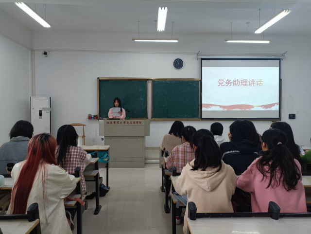 4月10日中午,外语系2024年上半年入党积极分子培训班开班仪式在厚德楼A209教室举行,外语系学生党支部书记吴琼参加仪式并作动员讲话。