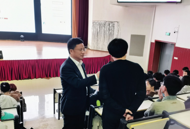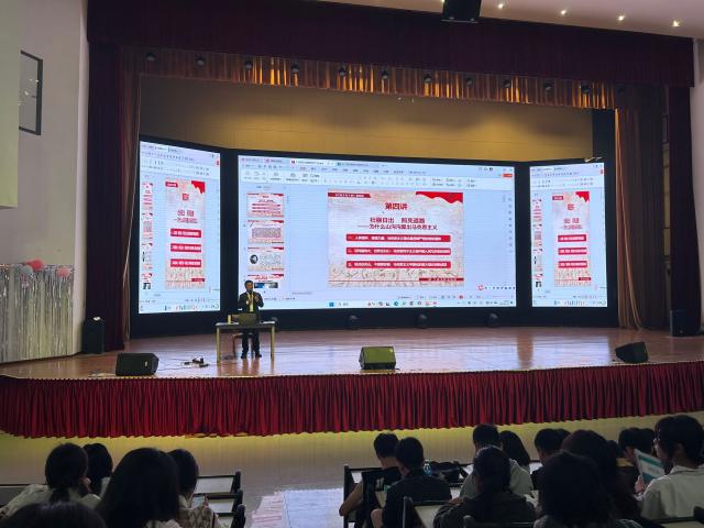 4月11日晚,经济系在笃行楼大报告厅为经济系2023级学生开展《红色文化十讲》思政课,课程邀请管理系党总支书记杨谨鸿主讲,主题为“为何山沟沟里出马克思主义”。