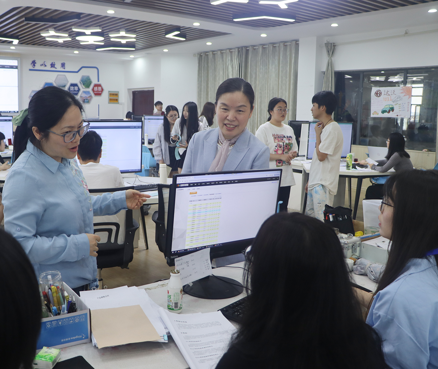 黎敏认真听取教师授课内容,关切询问学生学习兴趣。她对教师的教学能力给予了高度评价,就如何进一步提升教学效果、激发学生的学习兴趣、提高教学效率和效果等问题与教师进行了深入交流。