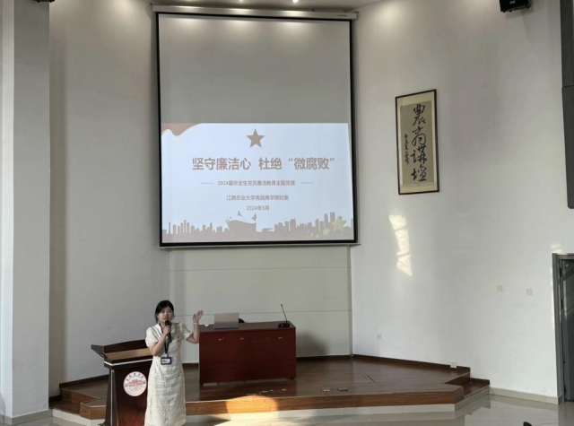 为认真贯彻落实党的二十大精神和习近平总书记关于党纪学习教育的重要讲话和指示精神,切实推进党纪学习教育,结合毕业生党员教育工作,5月15日下午,外语系学生党支部书记吴琼以“坚守廉初心,杜绝‘微腐败’”为主题,为支部全体毕业生党员上了一堂生动而深刻的专题党课。