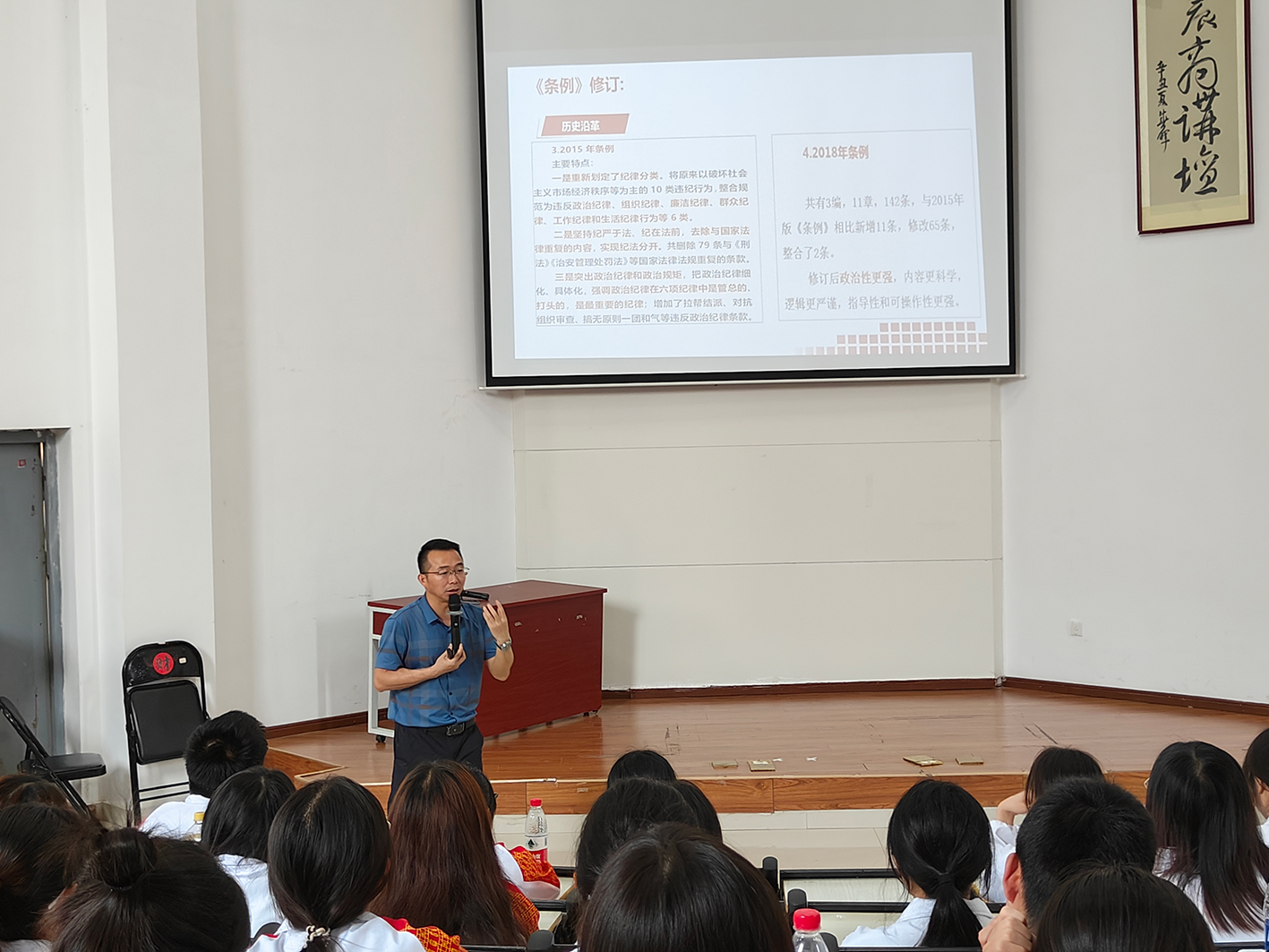 钟根佐从中国共产党的组织原则、纪律和作风三个方面进行授课,他紧扣党的“六项纪律”要求,要求党员自学深学、多思多想、对比对照,并对新修订的《中国共产党纪律处分条例》部分内容进行细致解读。最后,他要求全体党员发展对象做坚定的马克思主义信仰者,以实际行动争取早日入党。