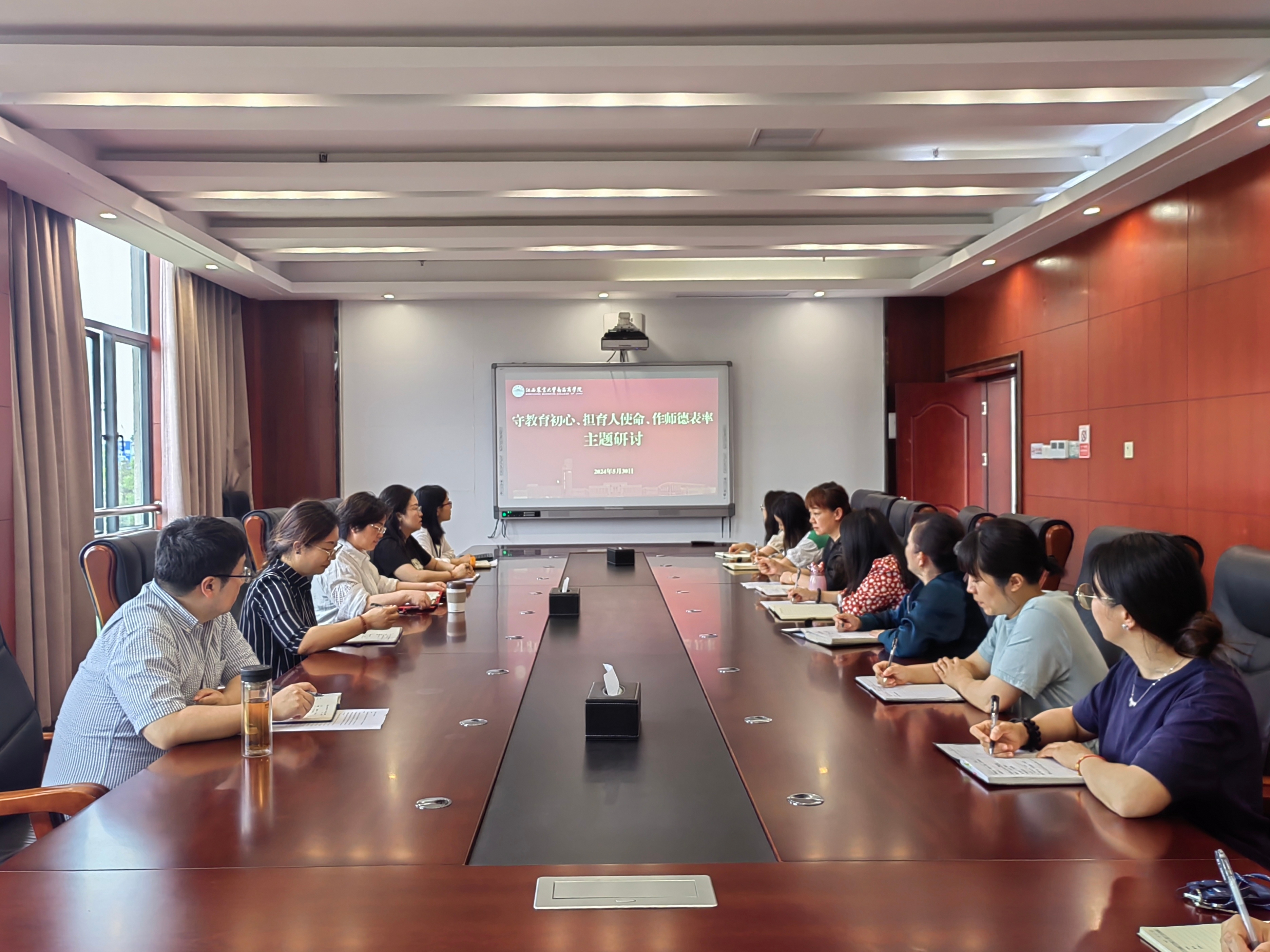 会上,周筠领学了习近平总书记关于师德师风的重要论述和重要指示精神,详细解读了《江西农业大学南昌商学院2024年师德师风建设主题活动实施方案》。全体成员观看了师德榜样宣传片和师德师风警示教育片,分别结合实际工作,围绕“守教育初心、担育人使命、作师德表率”主题进行了交流研讨。