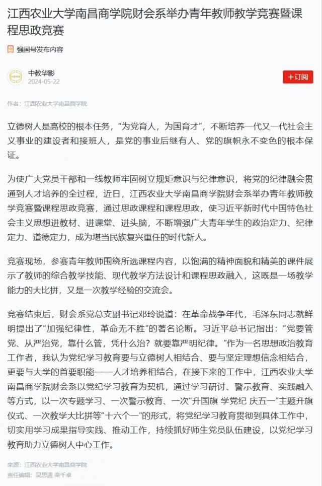 【学习强国】江西农业大学南昌商学院财会系举办青年教师教学竞赛暨课程思政竞赛