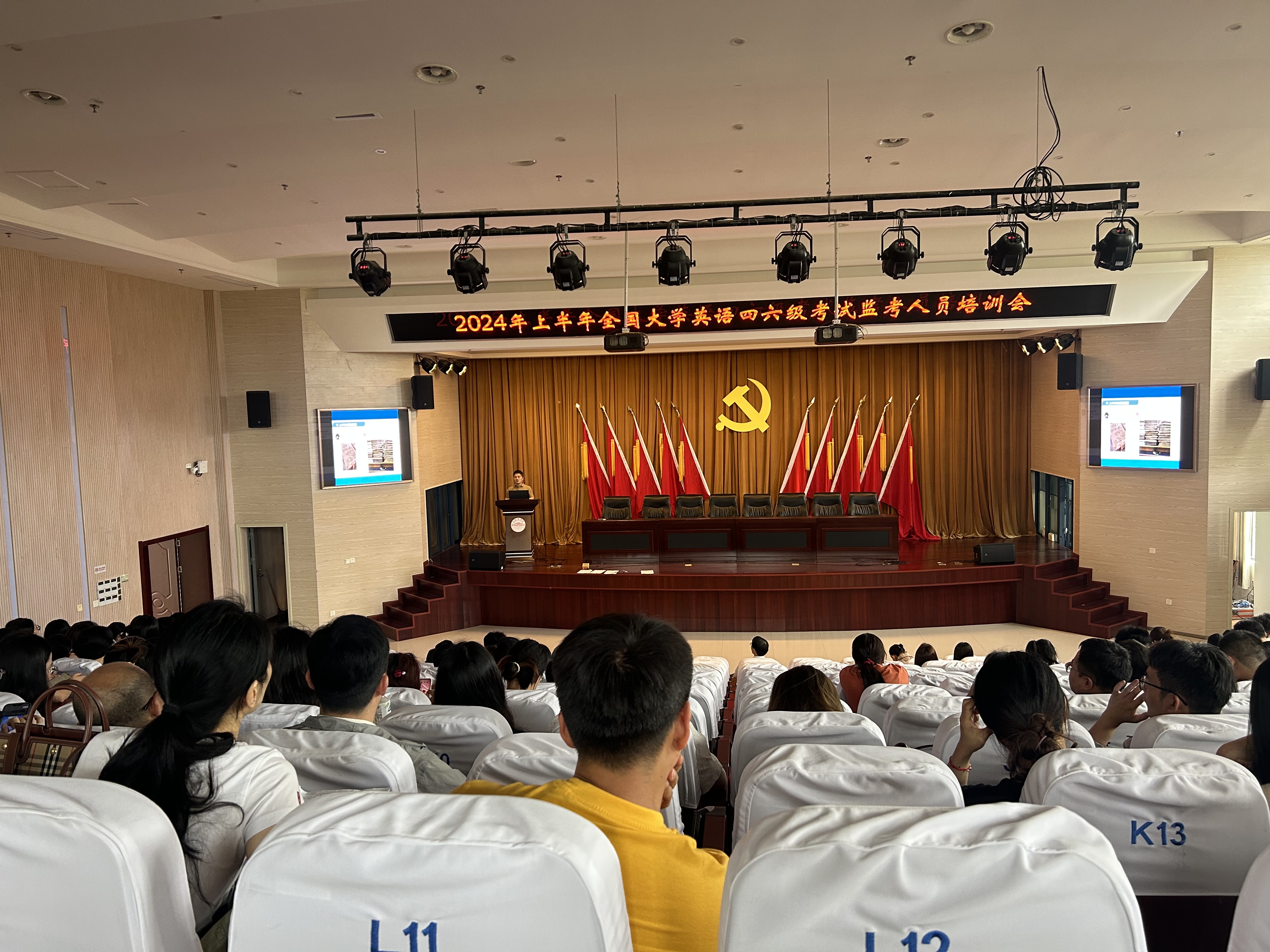 为确保2024年上半年全国大学英语四、六级考试顺利进行,6月12日下午,教务处在明道楼一楼报告厅举行了监考人员培训会,副院长李练军及全体监考人员参加。