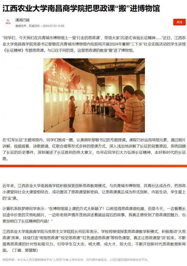 【人民日报客户端】江西农业大学南昌商学院把思政课“搬”进博物馆