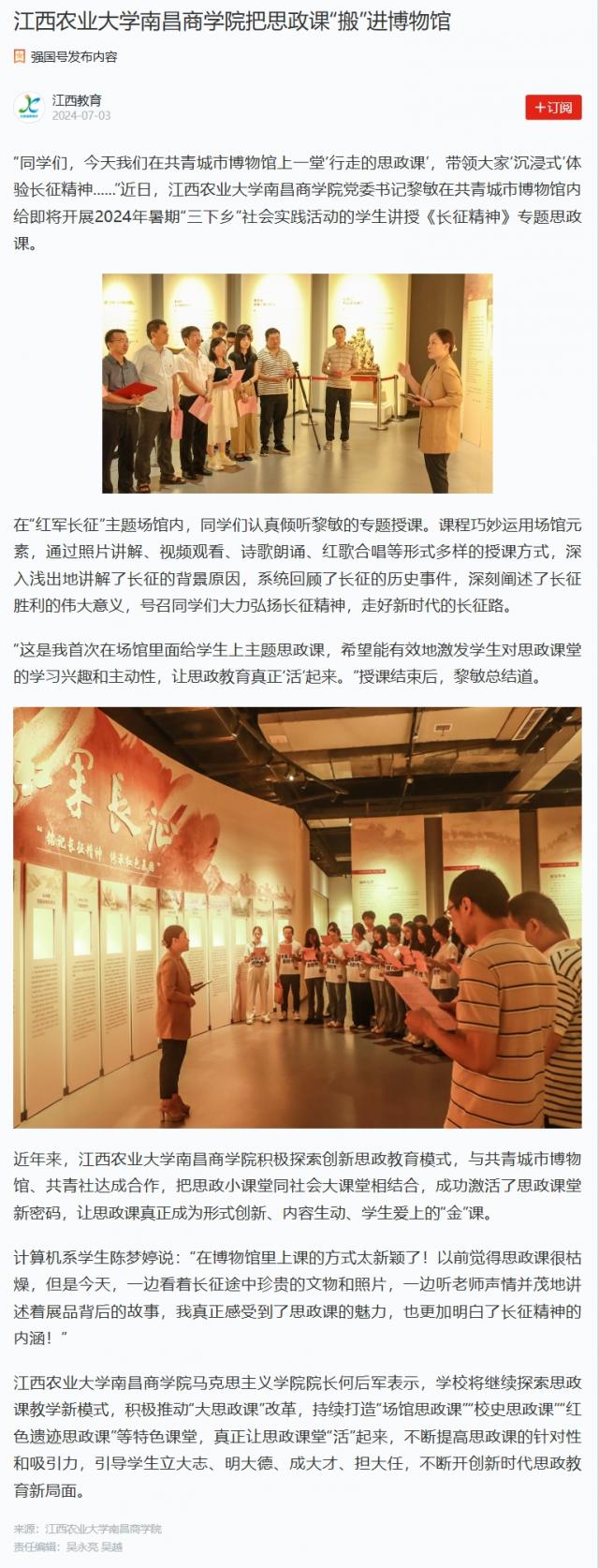 【学习强国】江西农业大学南昌商学院把思政课“搬”进博物馆