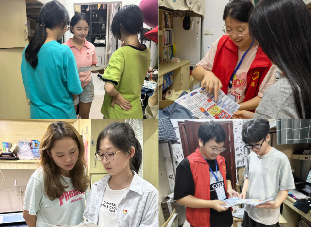 学生党员深入寝室发放寝室安全文明公约宣传册,进行安全知识宣讲,向同学们传授用电安全、火灾预防、防范溺水、防盗安全、防范电信诈骗等知识,增强了同学们的安全防范意识。