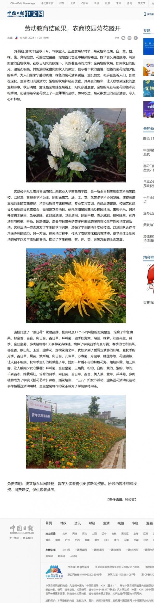 【中国日报】劳动教育结硕果,农商校园菊花盛开
