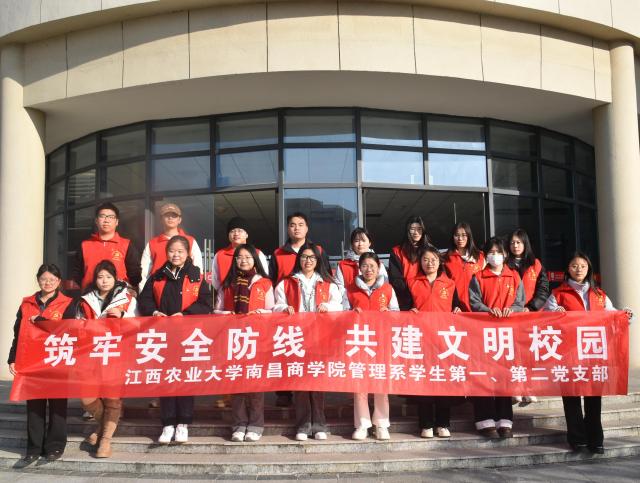 12月15日,管理系学生第一党支部、学生第二党支部在明辨楼开展“筑牢安全防线,共建文明校园”主题党日活动。