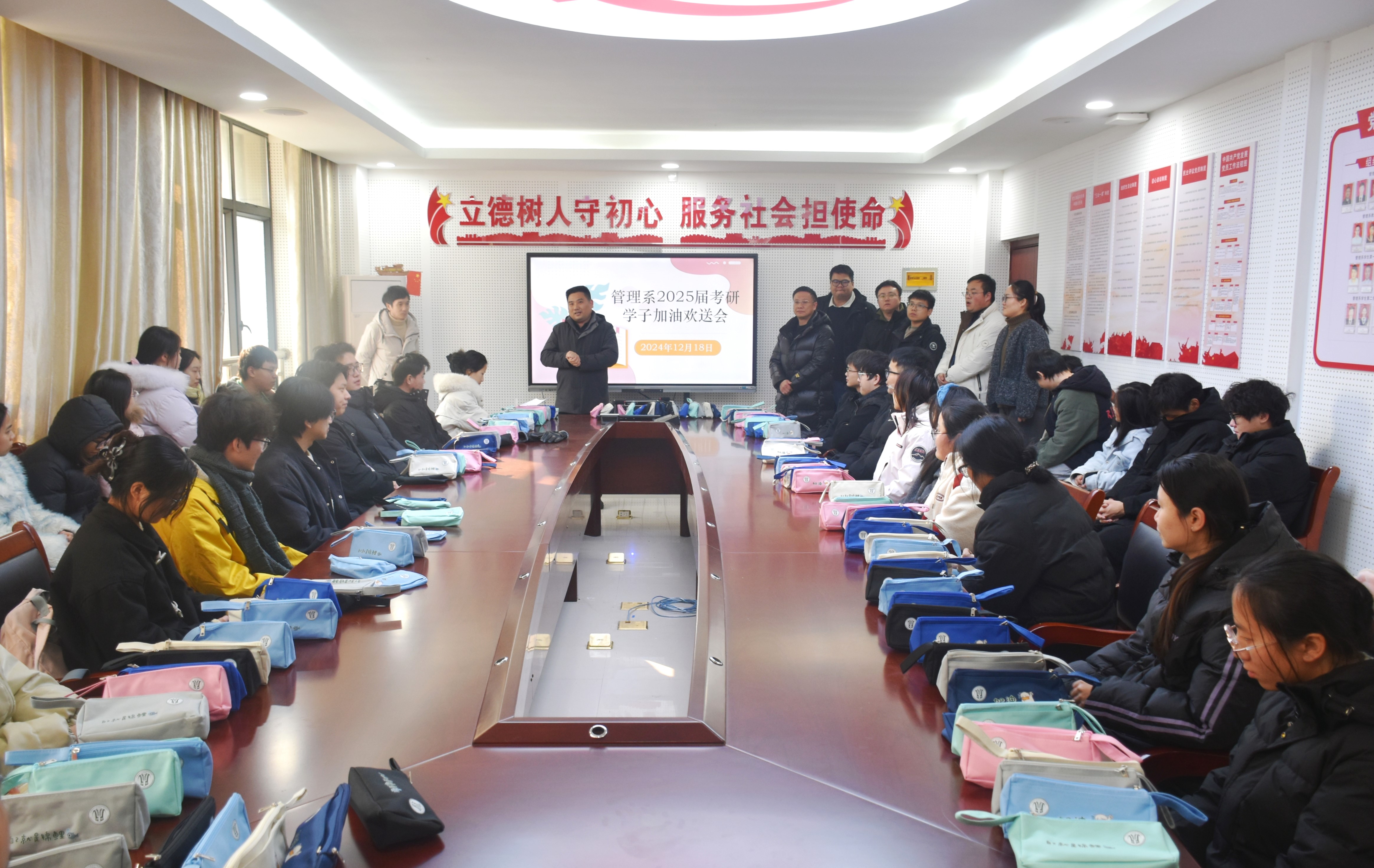 为激励考研学子备足信心,展现学院人文关怀,12月18日,副院长徐发亮深入管理系2025届考研学子欢送会现场,关心关怀考研学生,为学子们加油鼓劲。管理系党政负责人及相关教师参加。