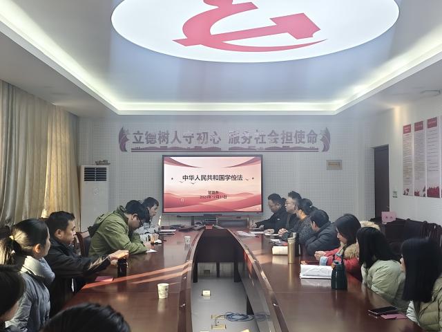 12月30日,管理系组织开展《中华人民共和国学位法》学习。系主任孙小飞主持,全体教职工参加。