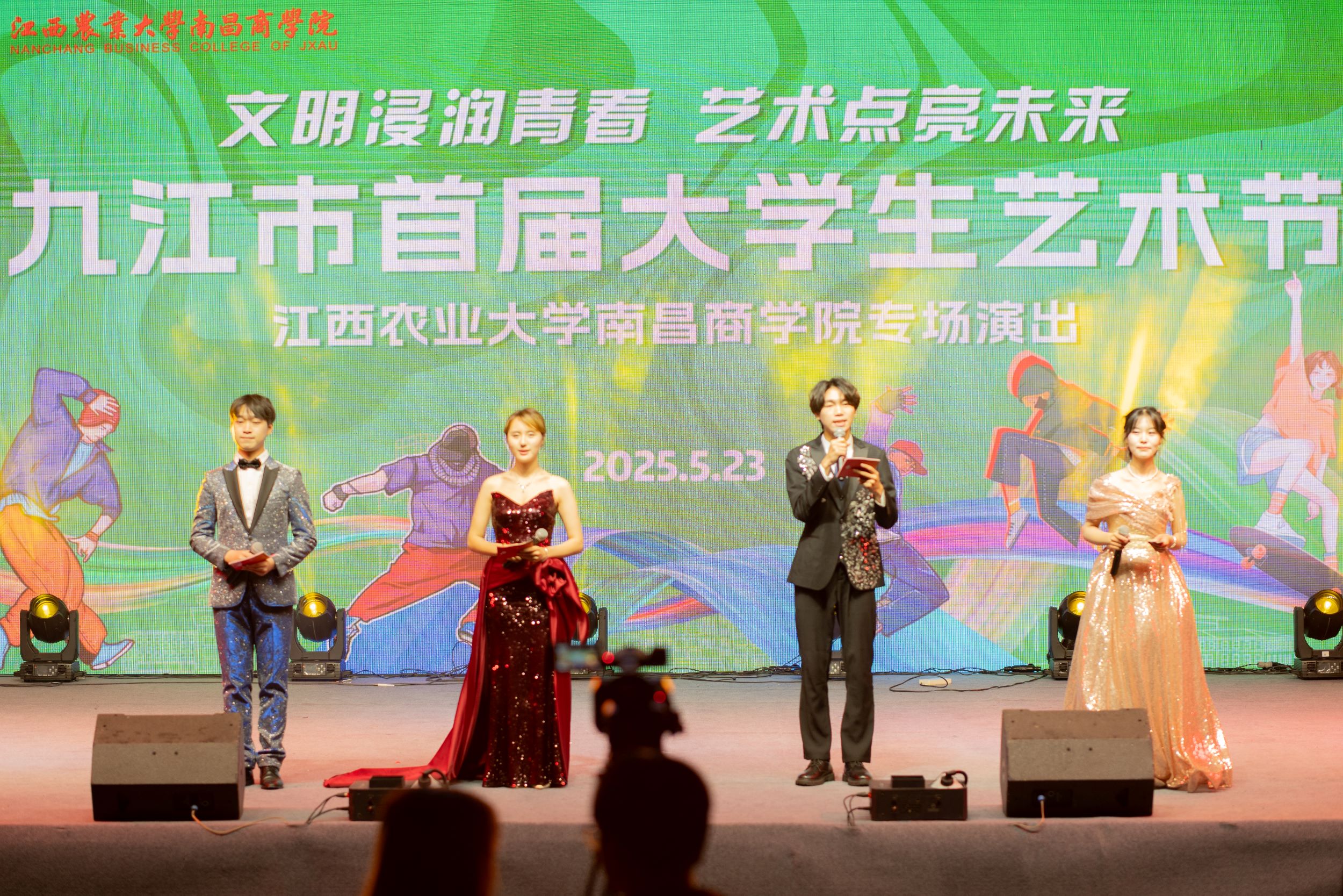 为积极响应九江市首届大学生艺术节号召,搭建大学生文化艺术深度交流平台,5月23日晚,由九江市委宣传部、市文明办、团市委等主办的九江市首届大学生艺术节江西农业大学南昌商学院专场演出在九江市九动梦工厂举行。