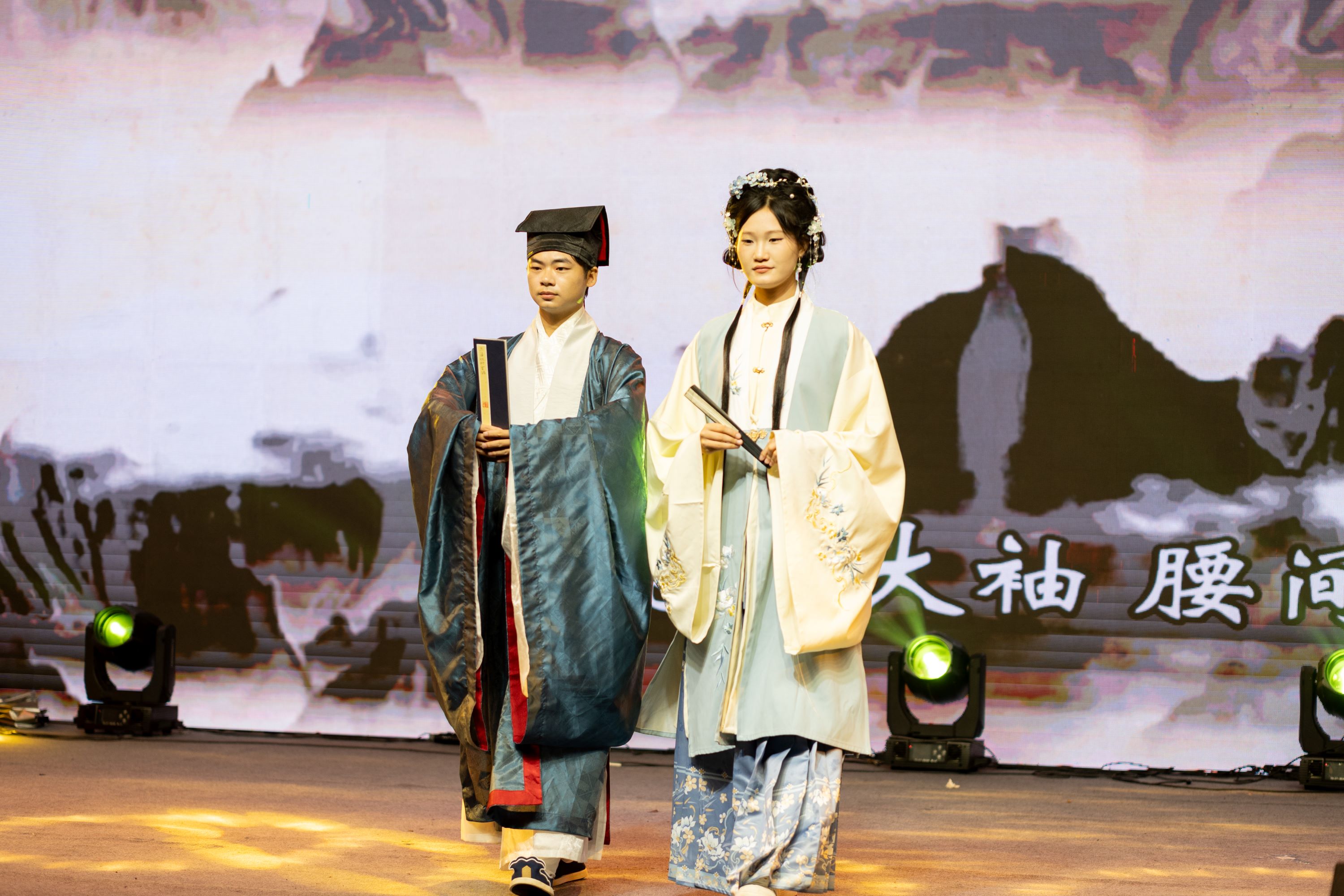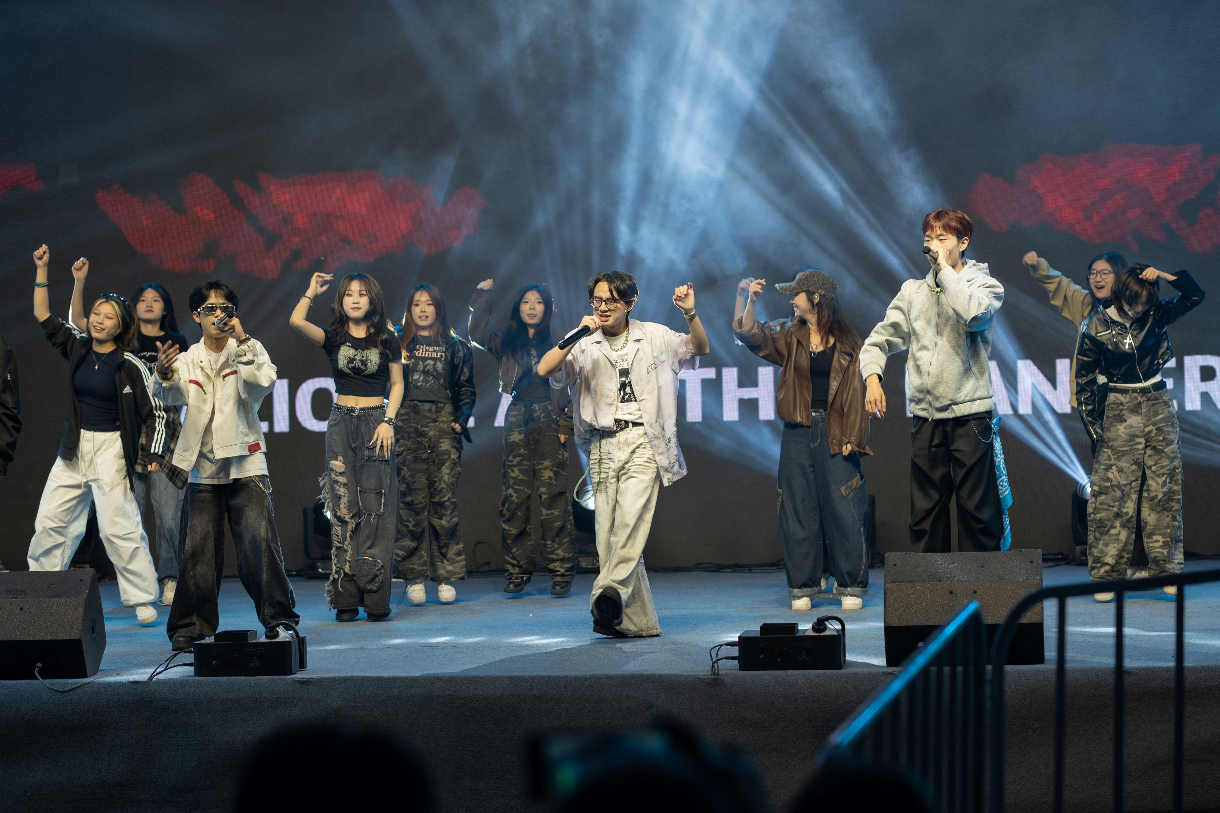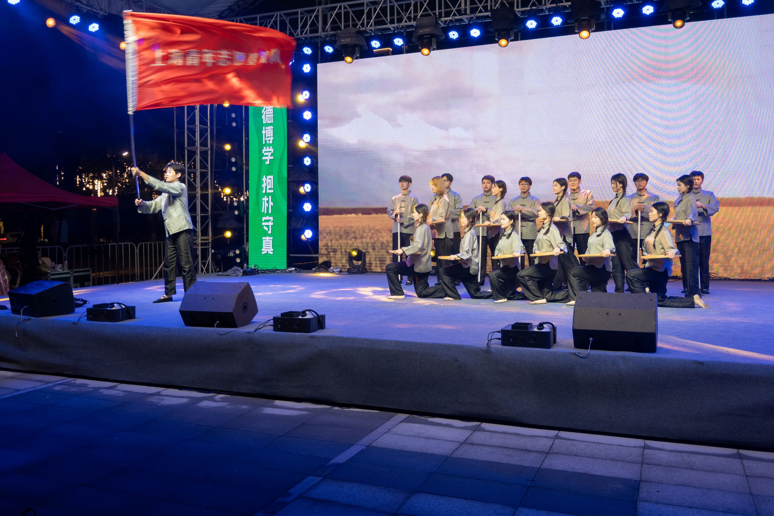 正式表演环节,正式FLOOD说唱社的特别版《我只在乎你》以独特的节奏与韵律瞬间点燃全场;商院主持队的朗诵舞蹈《我爱你,中国》充分表达了农商学子们对祖国的无限热爱;院排舞队《梨花又开放》排舞表演及人文与艺术系《锦绣汉风,裳影逸行》汉服秀将中华优秀传统文化的魅力体现得淋漓尽致;话剧团课《共青共青》垦荒篇之《垦荒春潮,荒山野岭换新颜》在商之韵舞蹈队的演绎下,生动再现了那段艰苦奋斗的日子。活动尾声,浔声配音社的配音表演《声声诗意》,计算机系、外语系舞蹈队展示舞蹈《旷野》,助力此次表演圆满落幕。