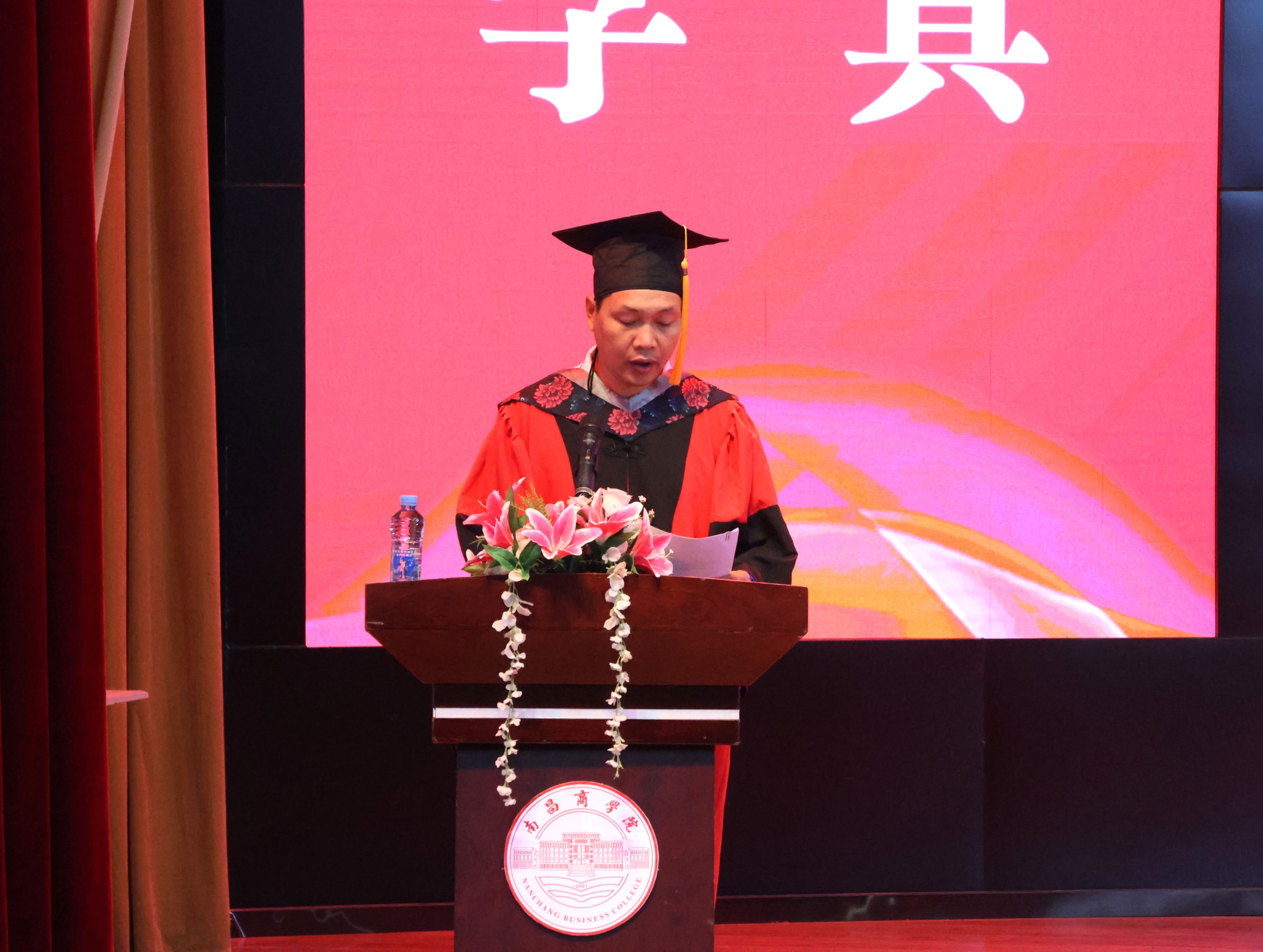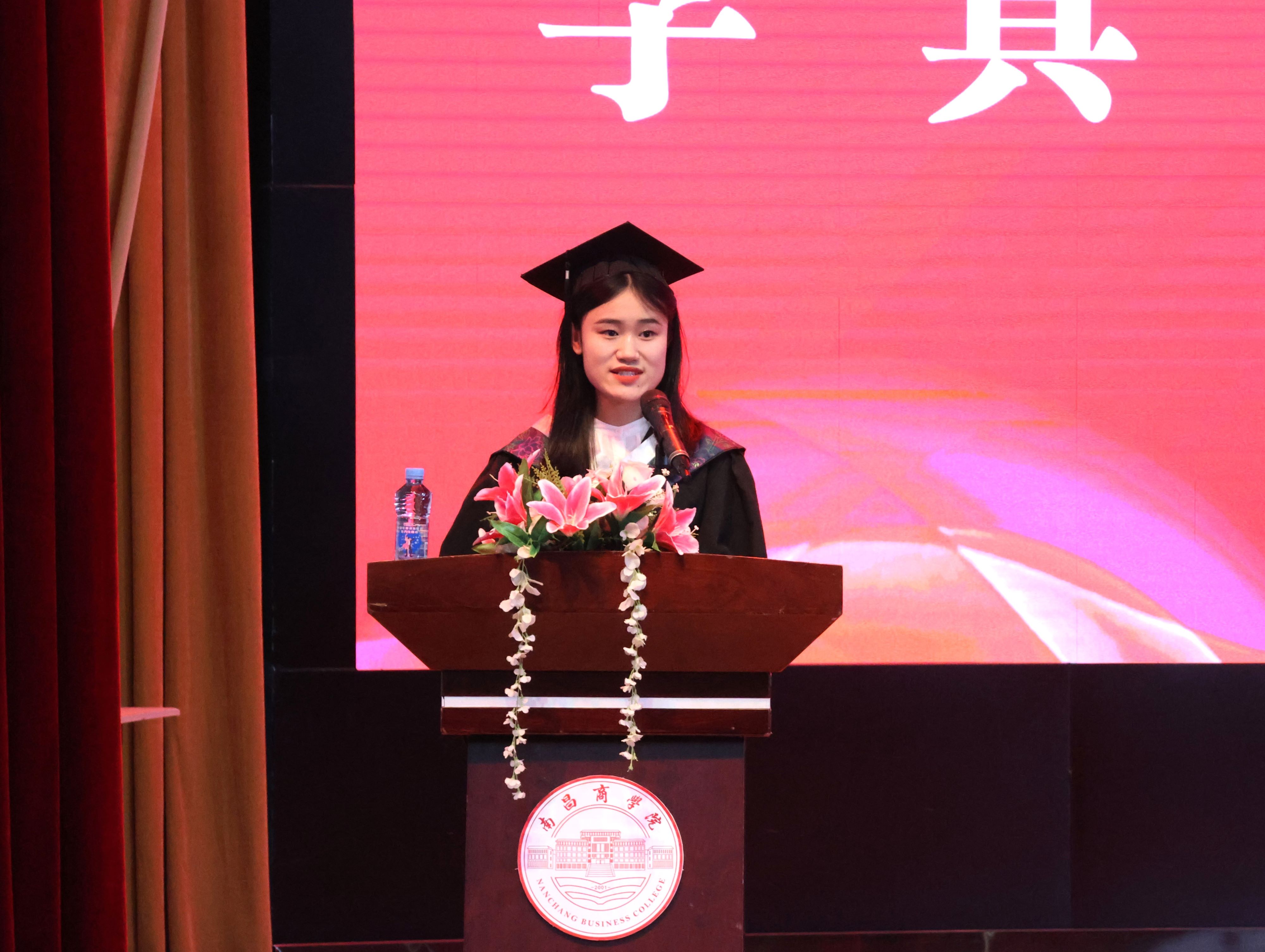 教师代表杨华玲结合不同专业特色,用独具创意的“行话”为每位毕业生送上祝福、寄予期待,向全体毕业生进行殷切嘱托。优秀校友代表,福建巨鲸生物科技集团有限公司股东、投融资总裁闵盛华为毕业生作毕业寄语,用亲身创业事迹鼓励毕业学子永葆兴趣与热爱,在时代浪潮中收获精彩人生。毕业生代表财会系会计2104班孙慧儿声情并茂地回顾在母校四年的点点滴滴,表达对母校的感恩,对恩师的感激,对同窗的祝福。
