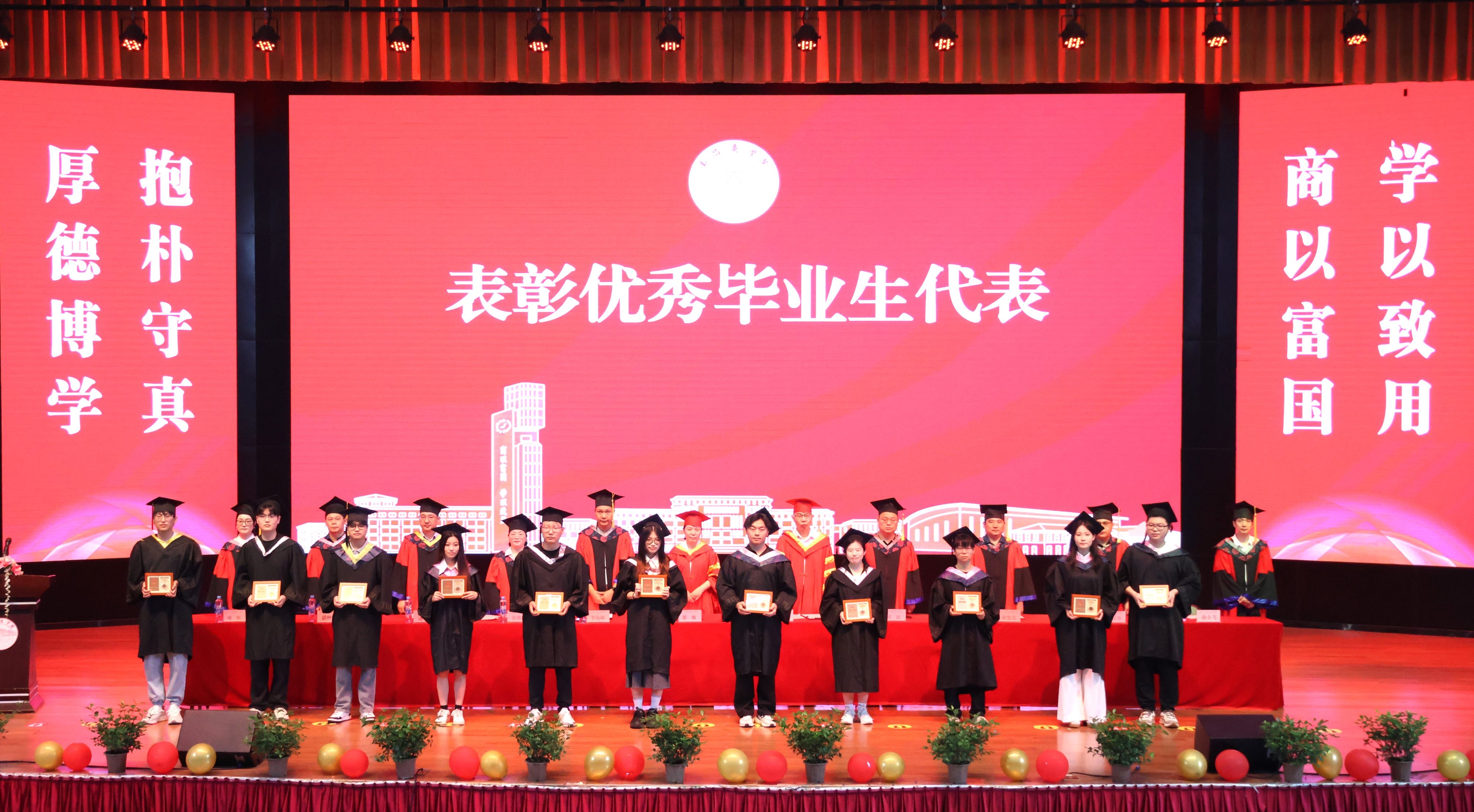 副院长徐发亮宣读《关于授予2025年普通本科毕业生学士学位的决议》。院党委副书记李海峰宣读《关于公布2025年优秀毕业生评定结果的通知》,并对11名优秀毕业生代表予以表彰。