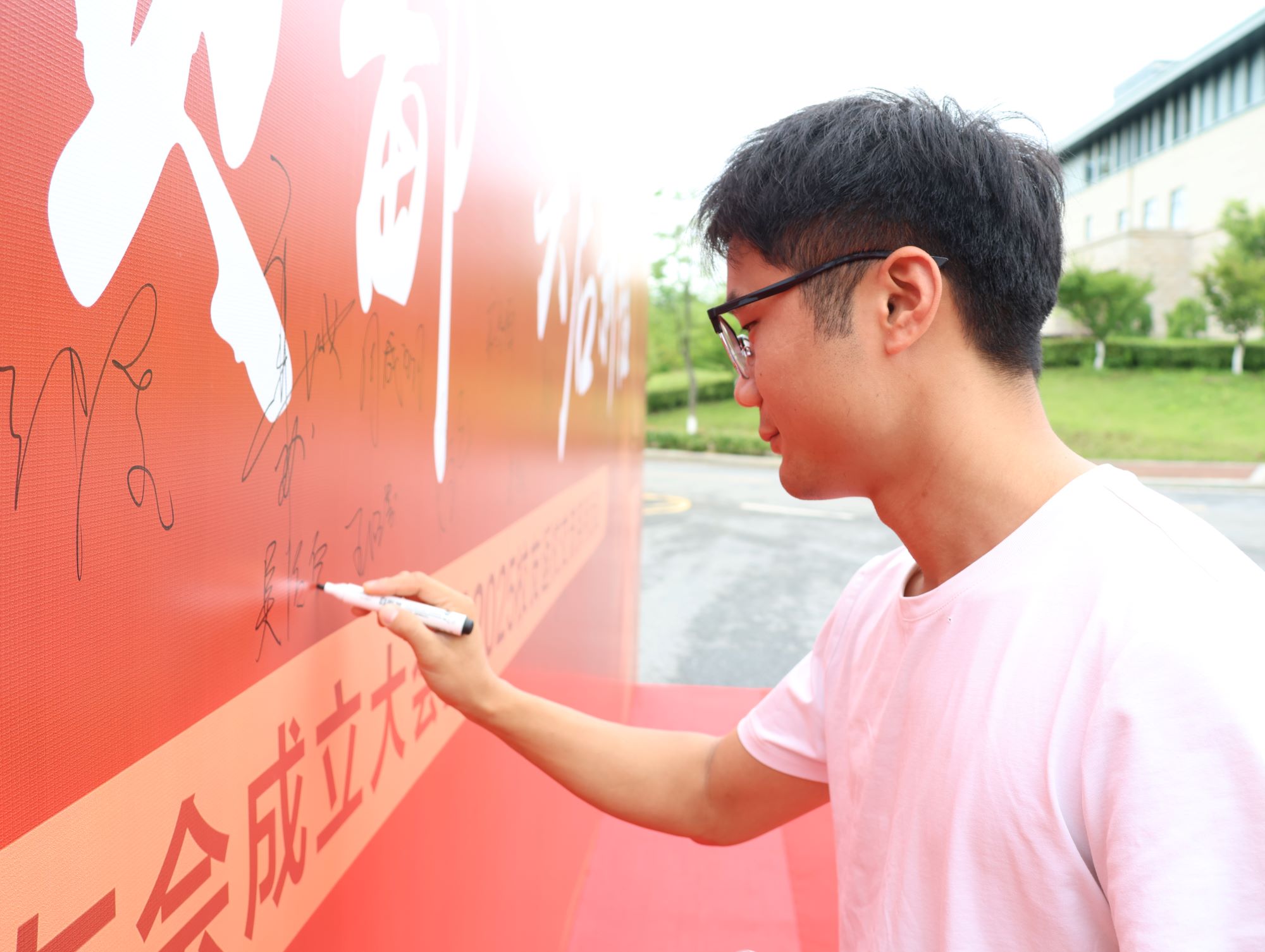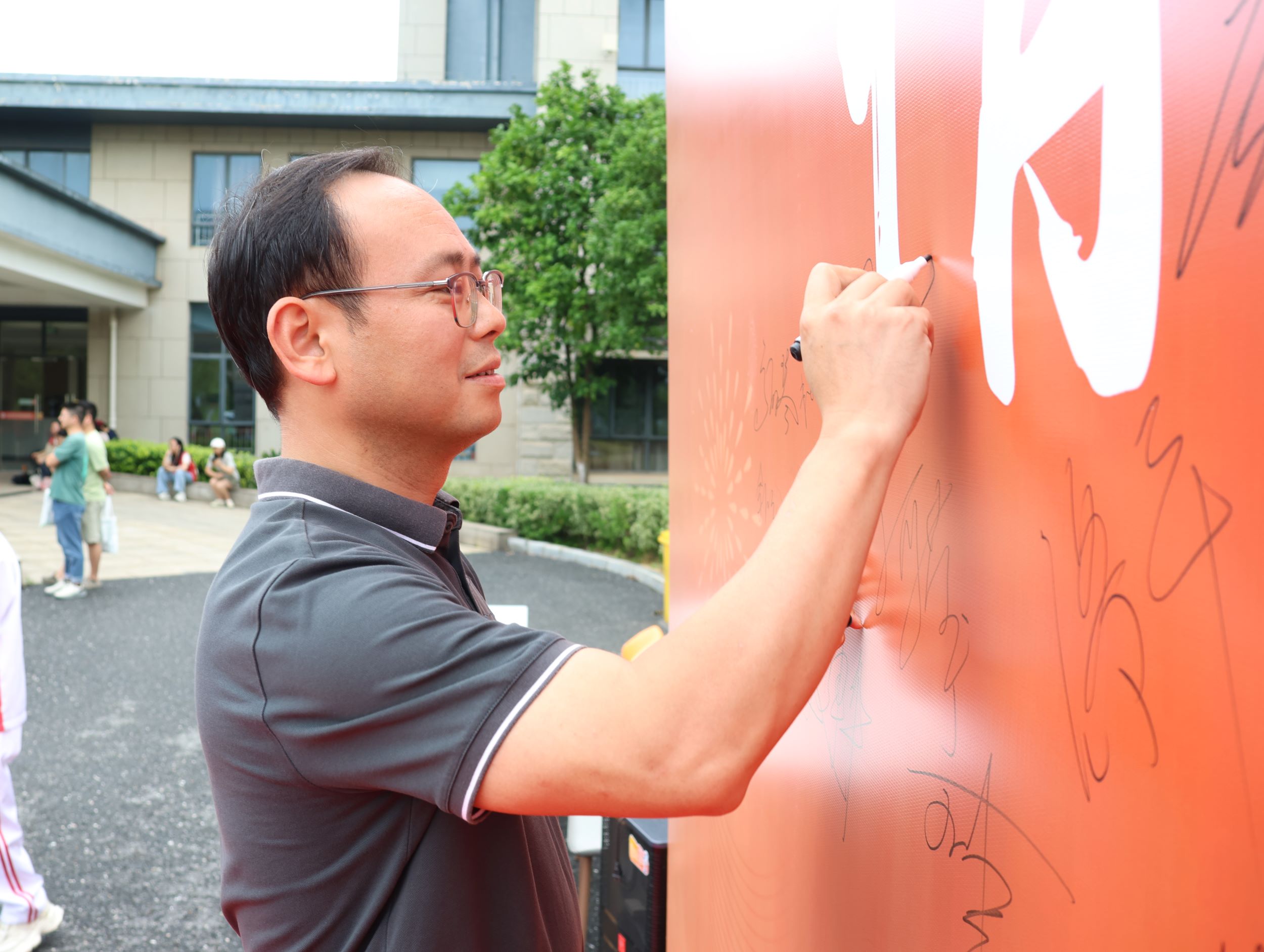 上午八点,校友陆续到院。在校生志愿者分工明确、协同互助,在签到处热情欢迎返校的学长学姐们,用实际行动践行“欢迎校友回家”的温暖情谊,为返校校友开启精彩纷呈的“回家之旅”。校友在签到处签到并领取纪念礼品,移步至签名墙进行签名、合影留念。