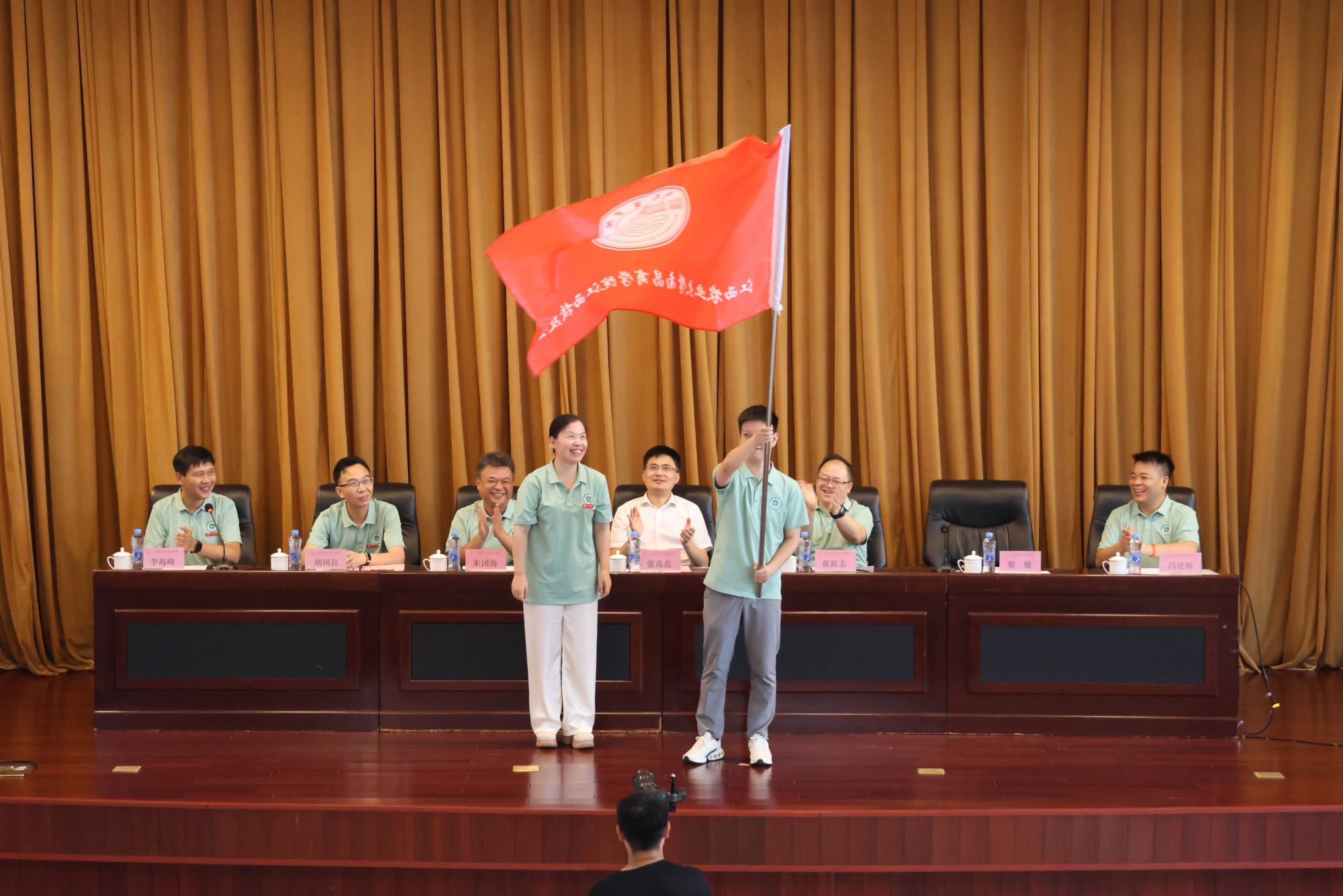 随后,郭斌作筹备工作情况报告,大会公布第一届理事会成员名单。黎敏向学院江西校友会授旗,黄新志为学院江西校友会第一届理事会颁发聘书。