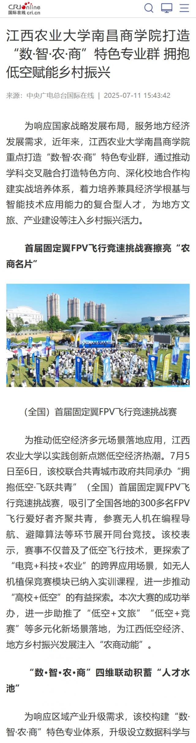 【国际在线】江西农业大学南昌商学院打造“数·智·农·商”特色专业群 拥抱低空赋能乡村振兴