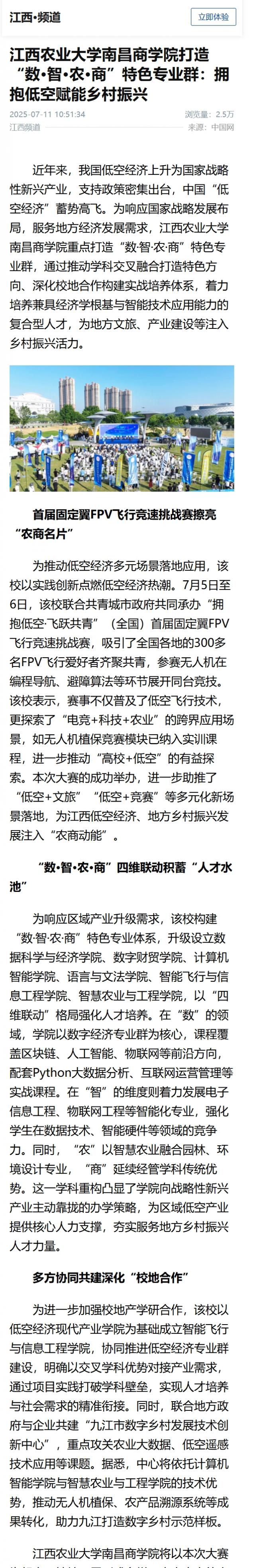 【中国网】江西农业大学南昌商学院打造“数·智·农·商”特色专业群:拥抱低空赋能乡村振兴
