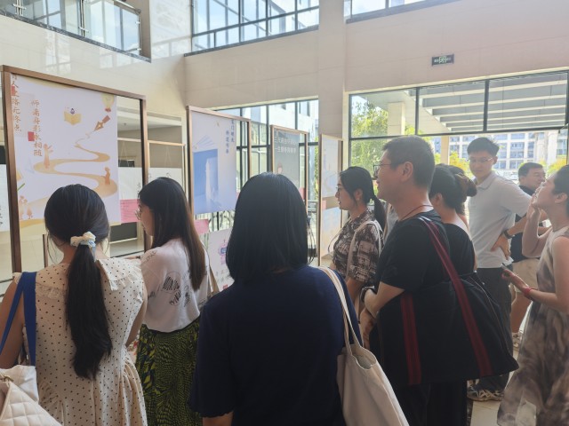 9月11日下午,语言与文法学院党总支组织全体教师前往明道楼一楼大厅,参观由教师工作部举办的第41个教师节师德文创作品展,以沉浸式学习深化师德师风建设,践行“厚植师德润心田,弘扬师风铸师魂”的教育理念。