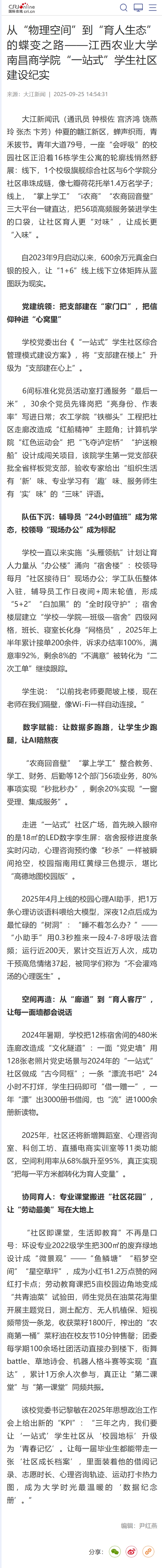 【中国日报】从“物理空间”到“育人生态”的蝶变之路 ——江西农业大学南昌商学院“一站式”学生社区建设纪实