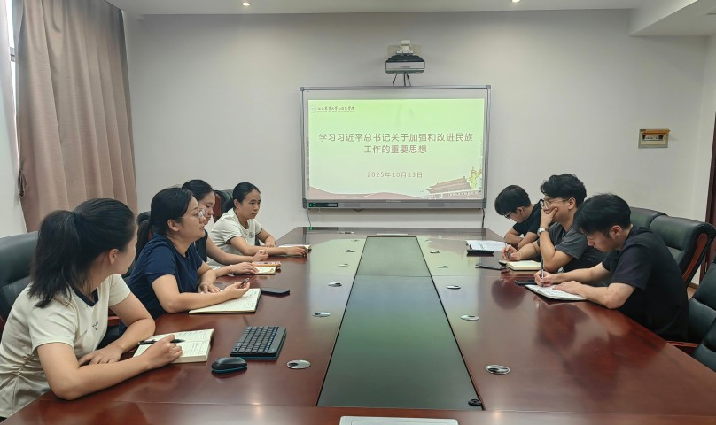 10月13日上午,宣传统战部在明道楼329会议室召开政治理论学习会,专题学习习近平总书记关于加强和改进民族工作的重要思想,部门全体成员参加。
