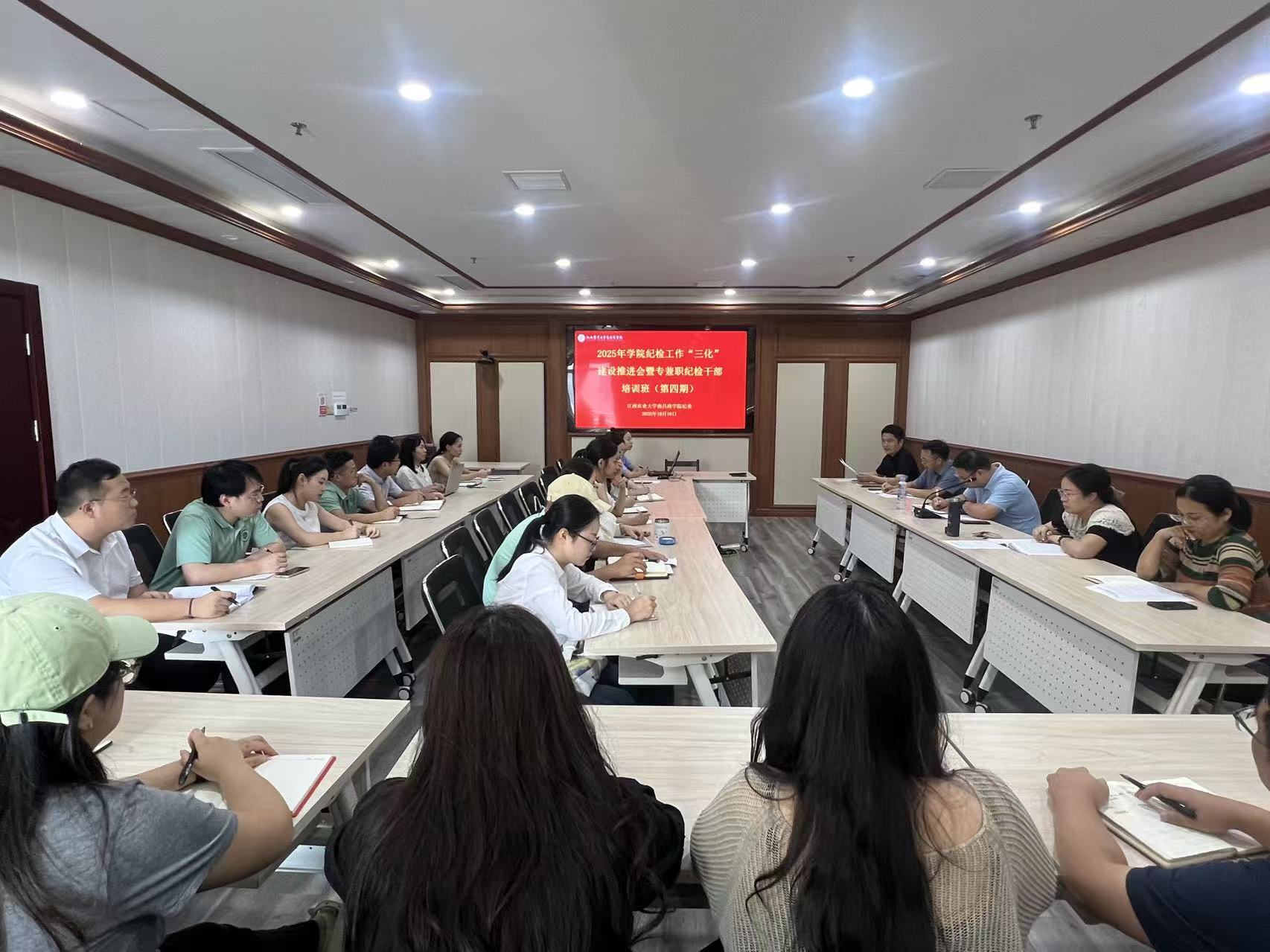 10月16日下午,学院纪委在明道楼B203召开纪检监察工作“三化”建设推进会暨举办第四期专兼职纪检干部培训班,院纪委书记邱波、专职纪检干部以及各级党组织纪检委员参加。