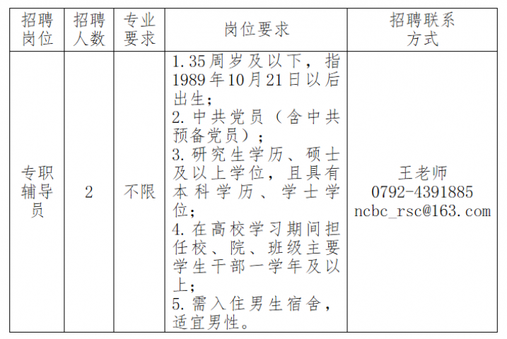 2.最低在校服务期为4年,须在辅导员岗位上的连续工作,年限内不允许转岗,聘期内服从学院统一安排。