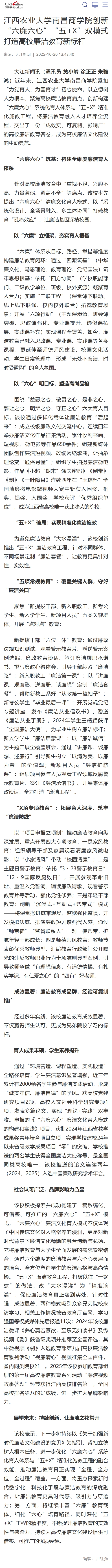 【大江新闻】江西农业大学南昌商学院创新“六廉六心”“五+X”双模式 打造高校廉洁教育新标杆