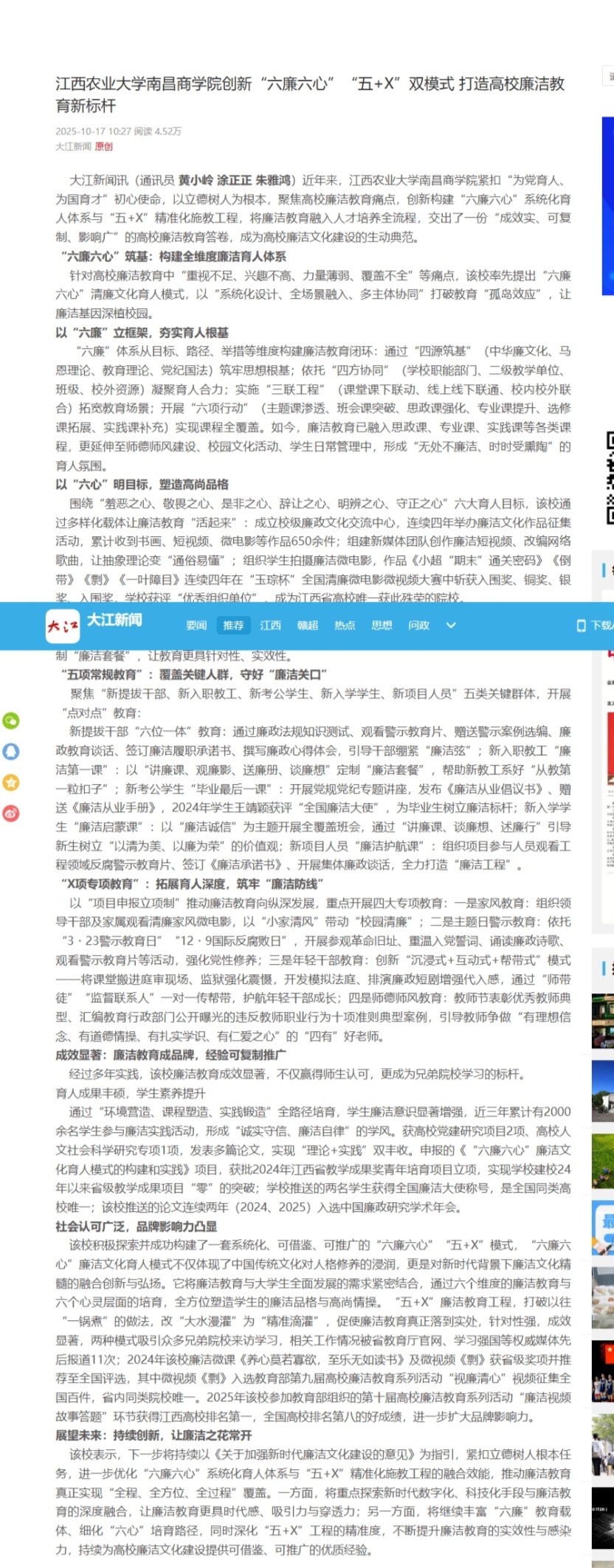 【大江新闻】江西农业大学南昌商学院创新“六廉六心”“五+X”双模式 打造高校廉洁教育新标杆