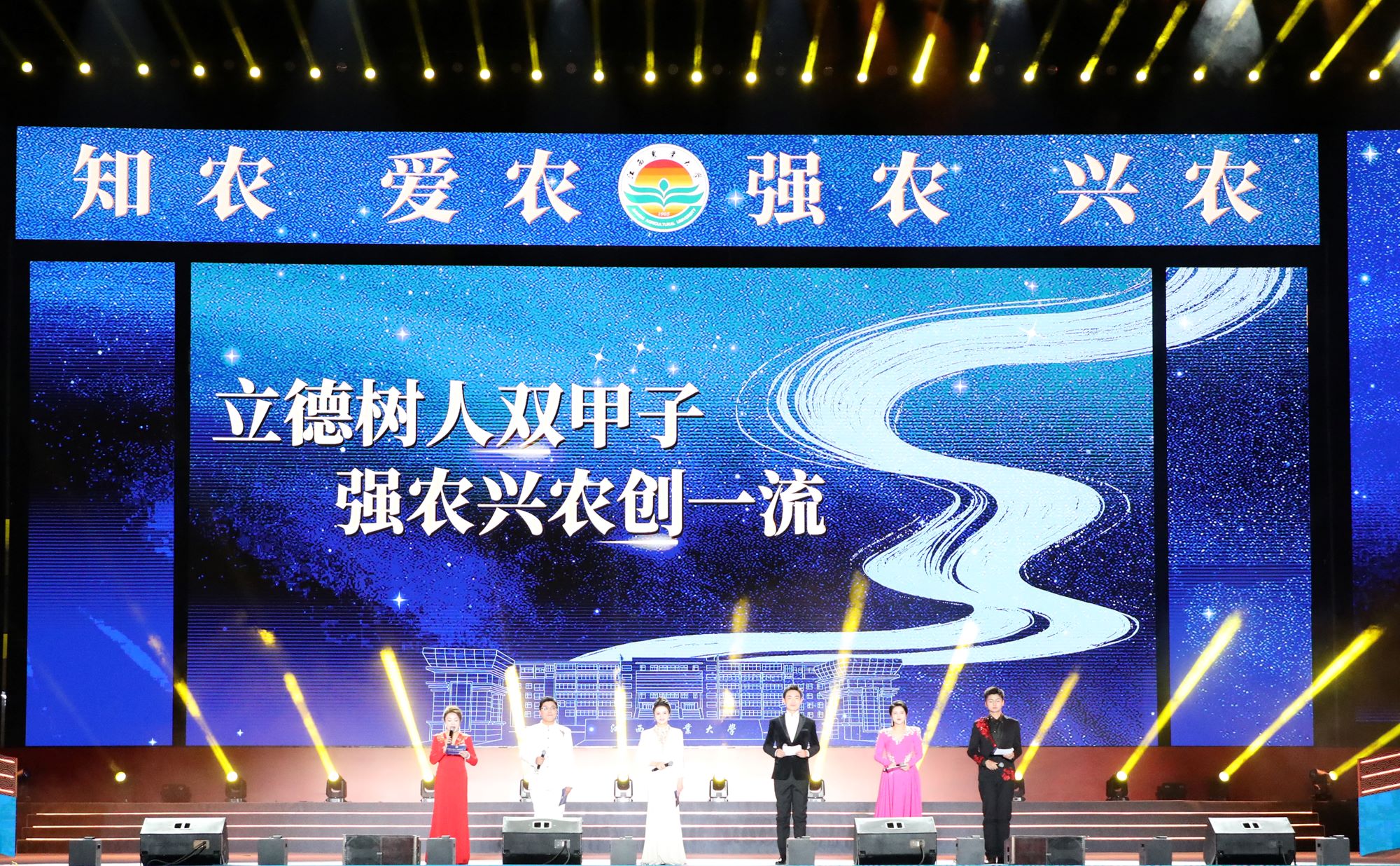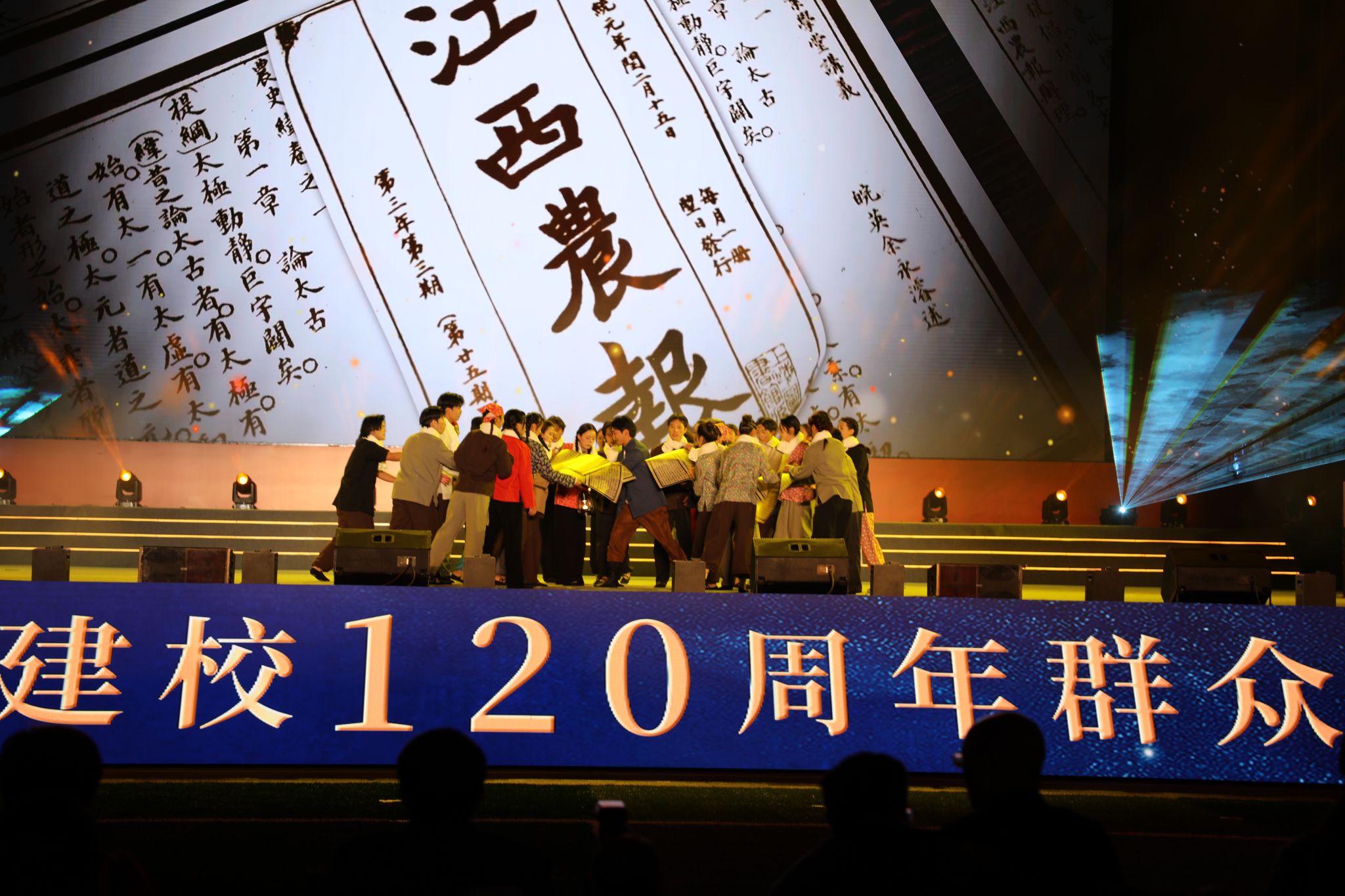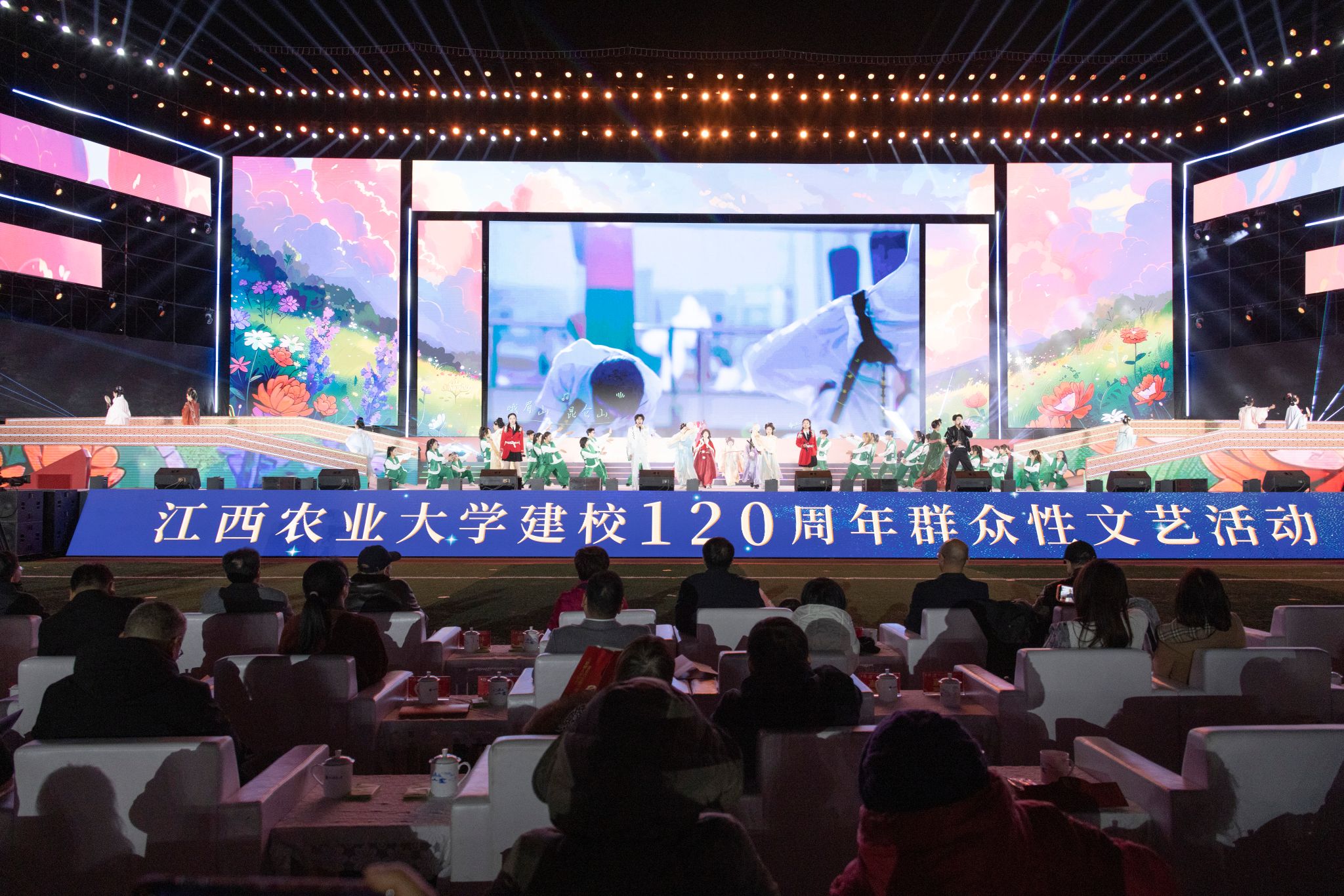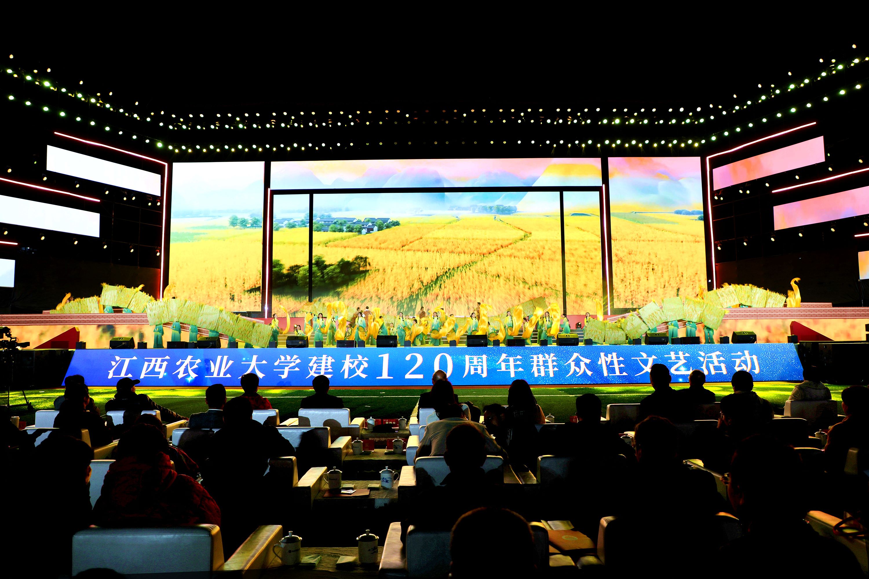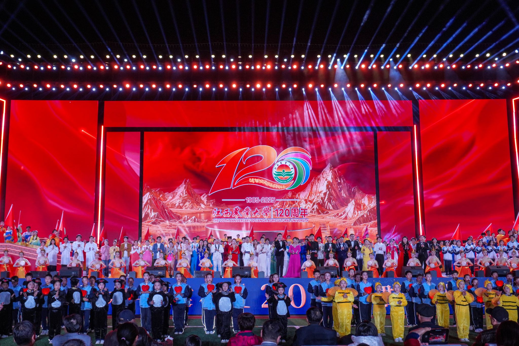 百廿弦歌不辍,薪火代代相传。11月20日晚,“立德树人双甲子 强农兴农创一流”江西农业大学建校120周年文艺活动在北区田径场隆重举行。田径场上星光璀璨、欢声漫天。众多嘉宾、海内外校友、兄弟高校代表与全校师生欢聚一堂,共庆华诞。全球江农人通过视频直播平台同步观看,共赴百廿之约。本次活动由北京广播电视台、江西日报社、江西日报传媒集团文化科技公司的专业主持人及学校大学生艺术团指导老师联袂主持,参演人员达2300余名师生。