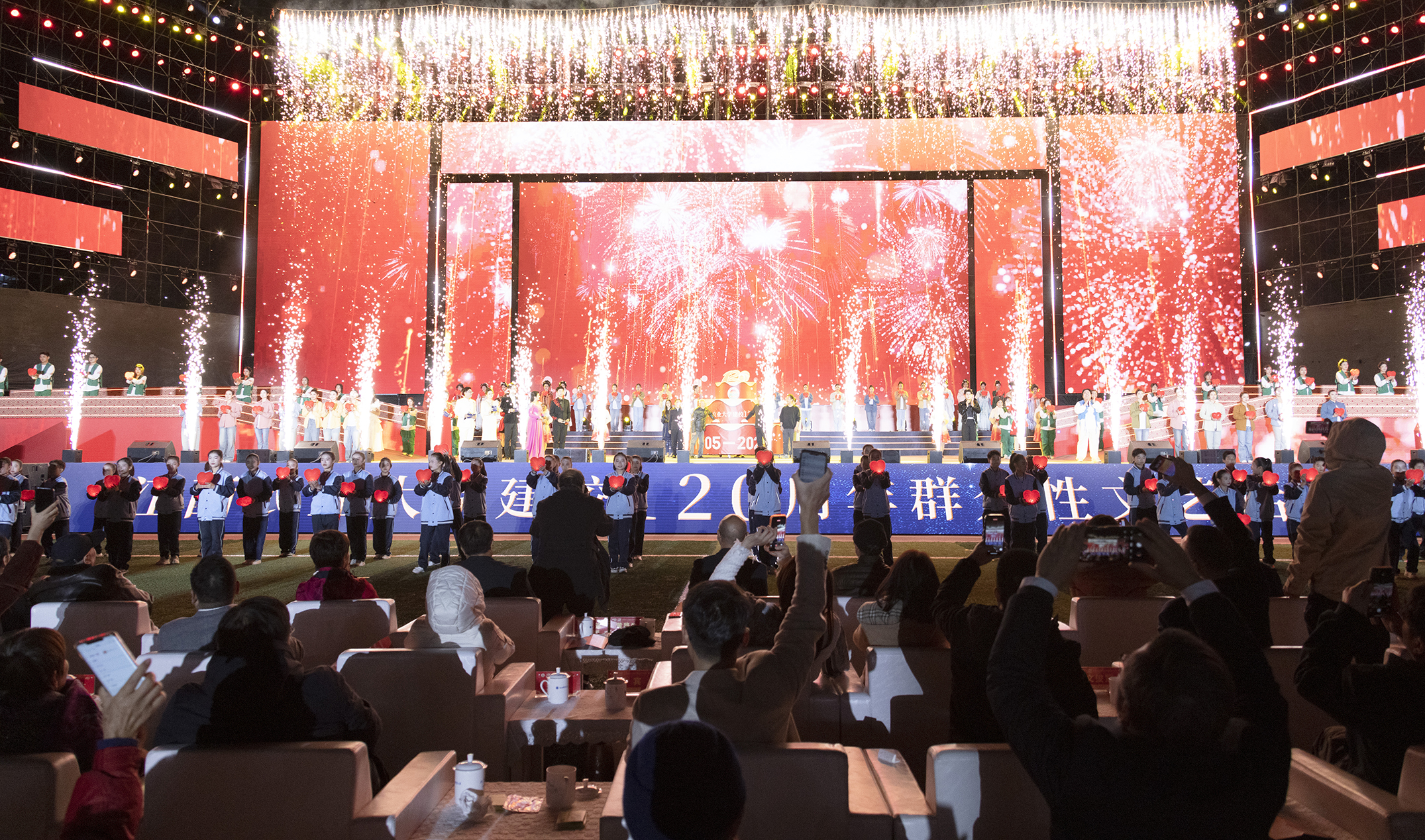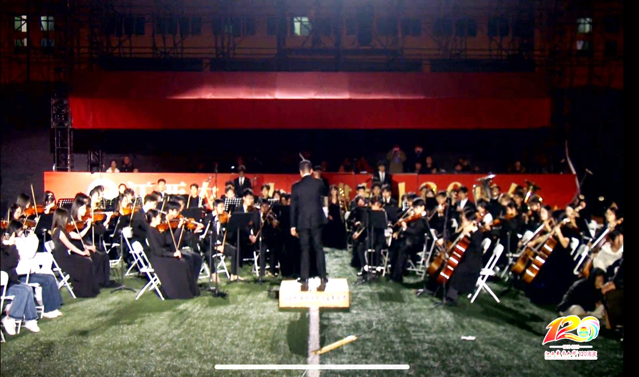 大型歌舞《沐光而行》以昂扬的旋律、舒展的舞姿,展现江农人紧跟时代步伐、奋勇争先的精神风貌。歌舞青春《写给校园的诗》用清澈的歌声、灵动的舞蹈,串联起江农校园生活的多彩诗篇。礼赞百廿交响《大地弦歌 百廿丰稔》融合交响乐、合唱,打造强农组歌,深情礼赞江农。活动高潮时刻,校友代表、教师代表、学生代表、老同志代表、留学生代表、工作人员代表走上舞台,共同按下象征江农百廿华诞的荣光之印,刹那间冷焰绽放、金雨洒落,现场观众纷纷点亮手机闪光灯,如星汇聚,将气氛推向顶点。